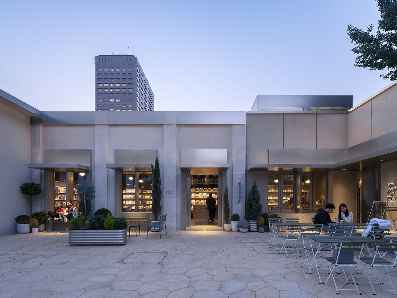 从建华路上自北向南望去,Jetlag Books书店背衬高大的友谊商店,两者既呈现出连续的整体感,又不尽相同,在似与不似之间,让访客难以辨别各部分的建成时间。设计既未刻意保留破败痕迹、成为“时间胶囊”,也没有无视岁月遗存、兀自“割裂创新”,而是以一种混同时空的中间态,将往昔故事融入眼前日常,连接建筑与街道、品牌与社区、过去与当下。