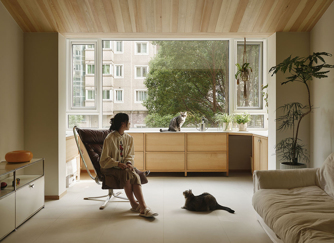 人与宠物的生活路径就像两根平行的线,偶尔在屋内各个有趣的角落里短暂交汇,彼此陪伴,共同生活。
