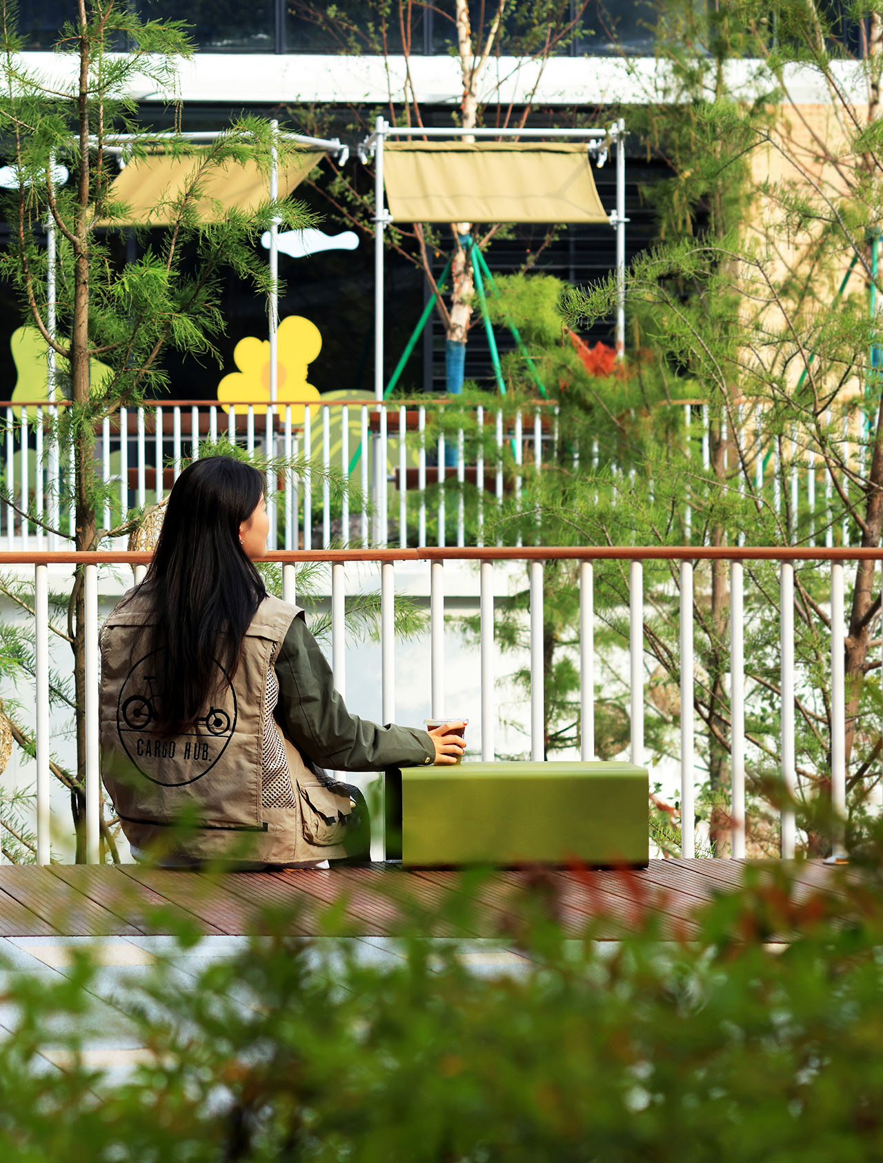 在工作日非高峰时段,亲橙PARK最常见的景象,并非密集消费。有人带着宠物在阴影下坐下,有人短暂接电话,也有人只是停留片刻,什么都不做。这些行为没有被预设为"场景",却被空间自然接纳。