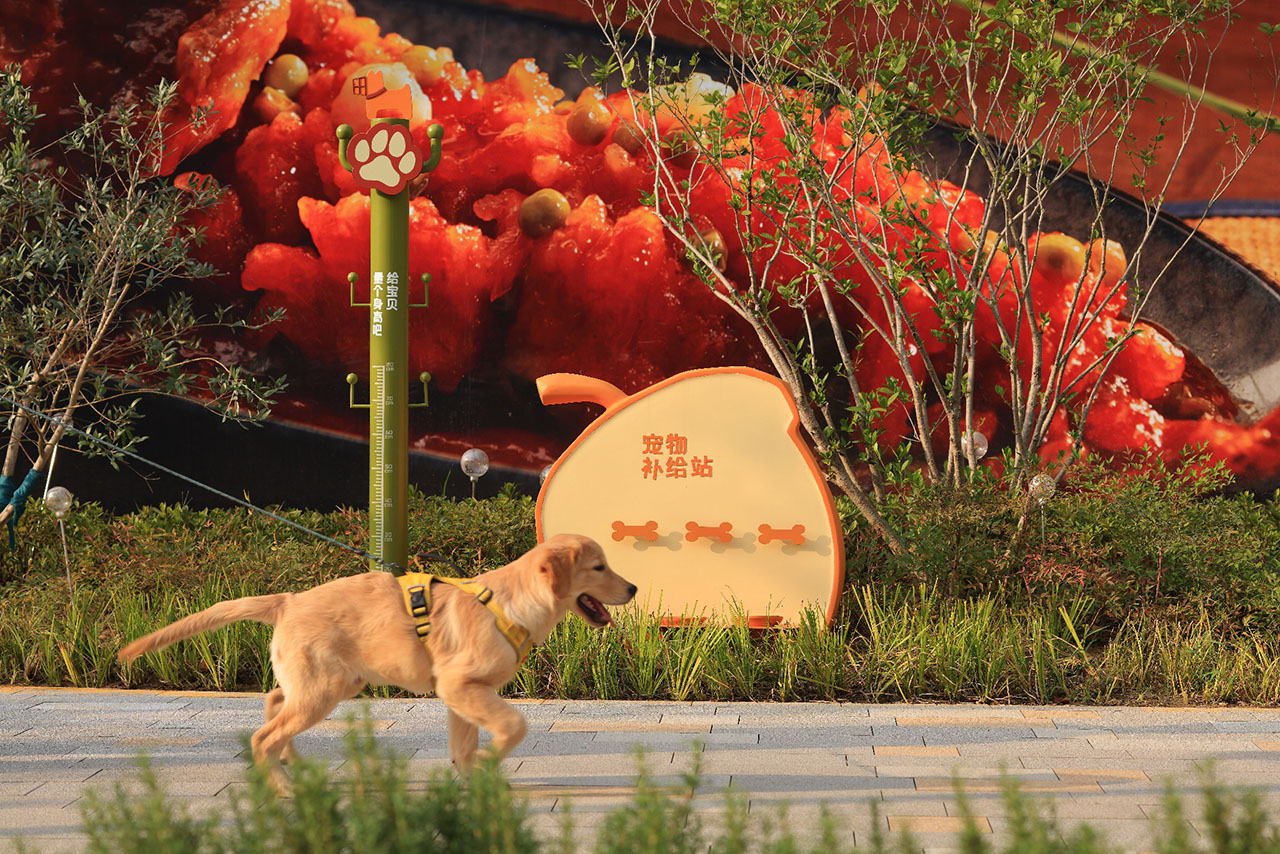在亲橙park里"宠物友好"被自然的嵌入场景里,座椅边的宠物牵引装置,毛孩子的专属领地毛茸茸岛,以及藏进自然里的贴心提示,既满足社区日常需求,也引入一种更松弛的节奏,让人与自然,宠物与社群的互动自发生成。当使用先于消费发生,商业反而以更稳定方式融入其中,成为结果而非前提。