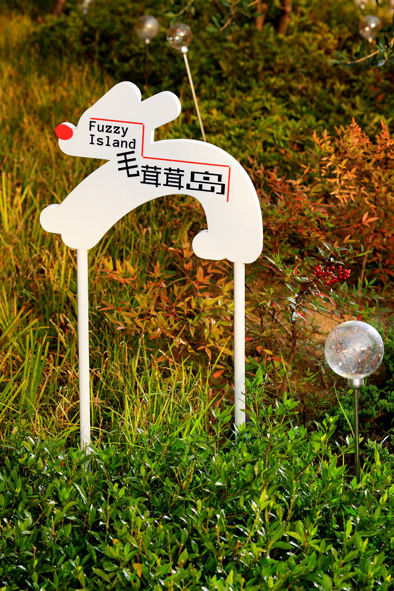 “森屿精灵”作为项目核心IP,我们不希望将它当作重复强化的视觉符号,而是以低干扰方式植入转角、休憩节点与局部界面——有时被注意到从草丛里冒出,有时藏在自然里安静的待着。