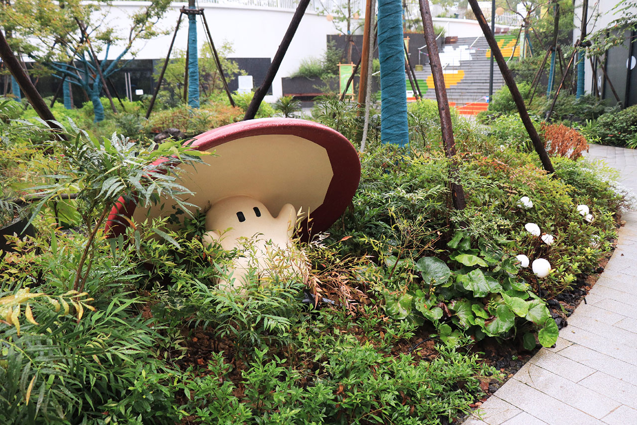 我们希望能用设计让空间叙事延展至微观行为,使场景里的每个停顿,每次互动都能成为对自然的回应。散落在下沉庭院里的松果椅,是对"自然掉落之声"的趣味化转译,它们如精灵遗落的宝物,等待人们去探索。