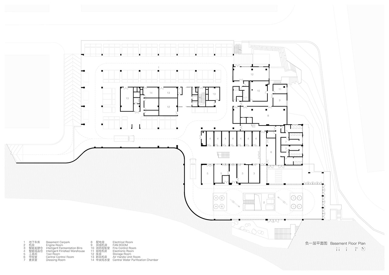 我们的设计起始于如何强化这个场地的特征。我们选择把建设用地的四分之一作为城市公园使用。在道路一侧形成城市级的退让。这是一个冒险的策略,但可以呈现一种独特的城市景观 :让无声的酿酒过程在城市一隅开放性的呈现。从高粱的种植收获、制曲下沙、九蒸九晒,到高温馏酒,甚至保存和陈化的过程都可以向公园打开,让劳作与自然的联系成为城市生活的一部分。