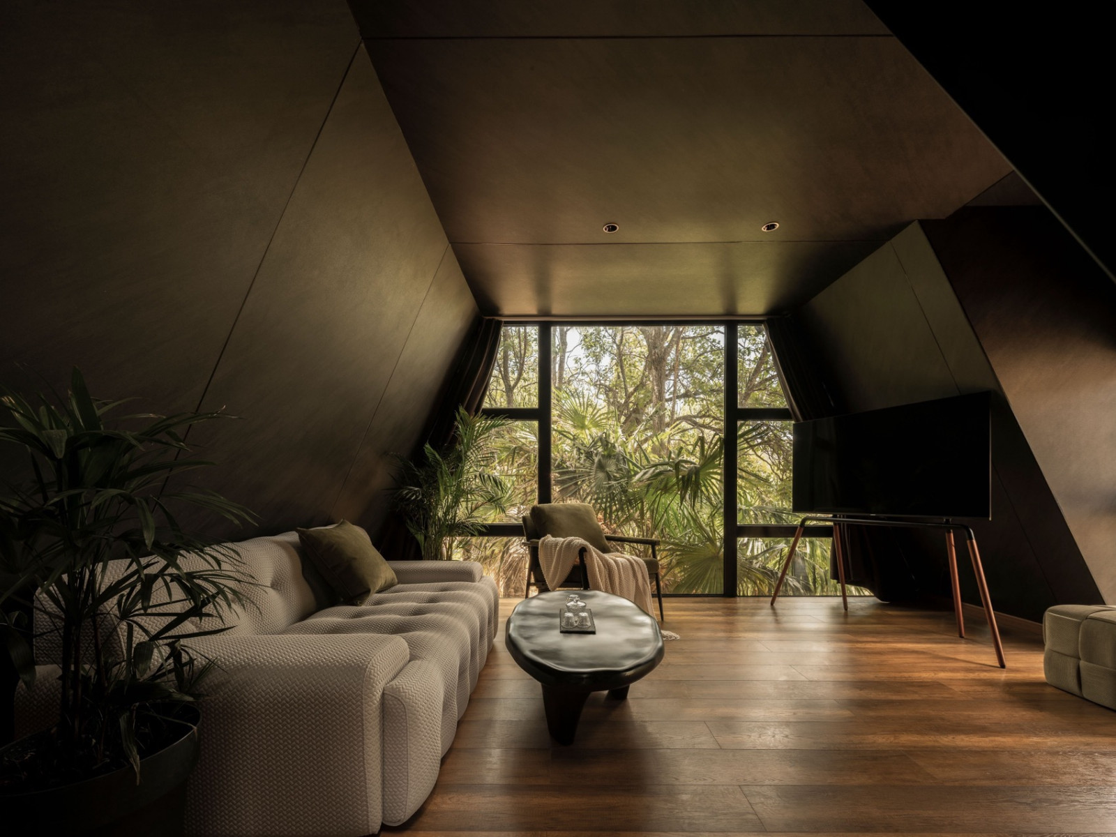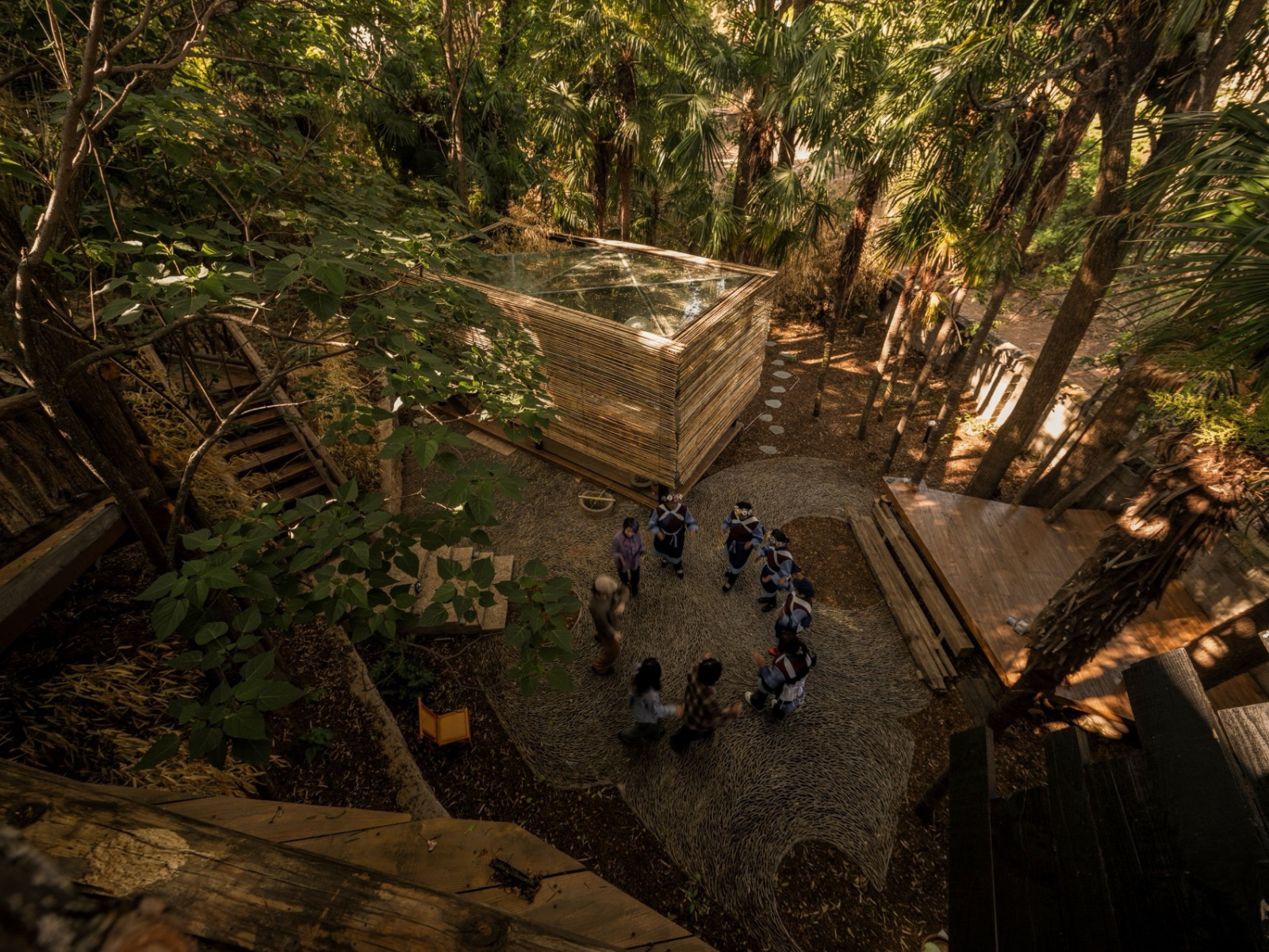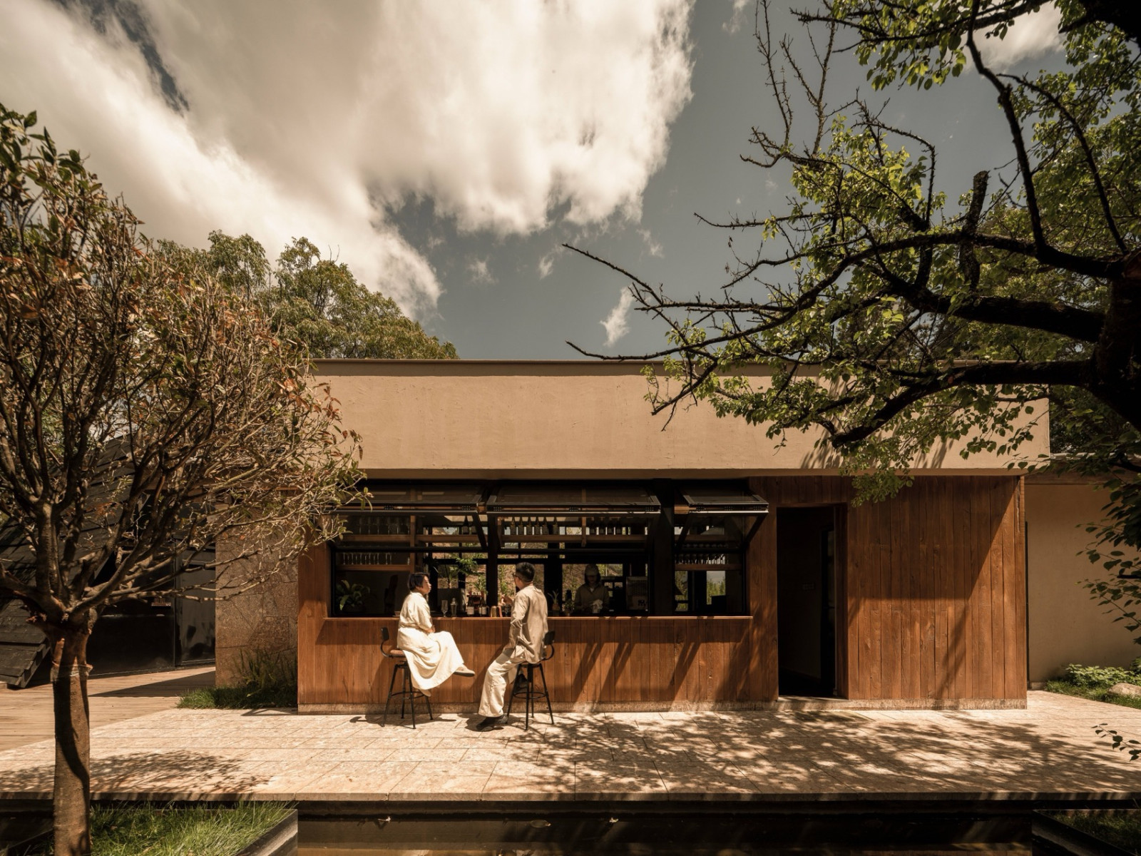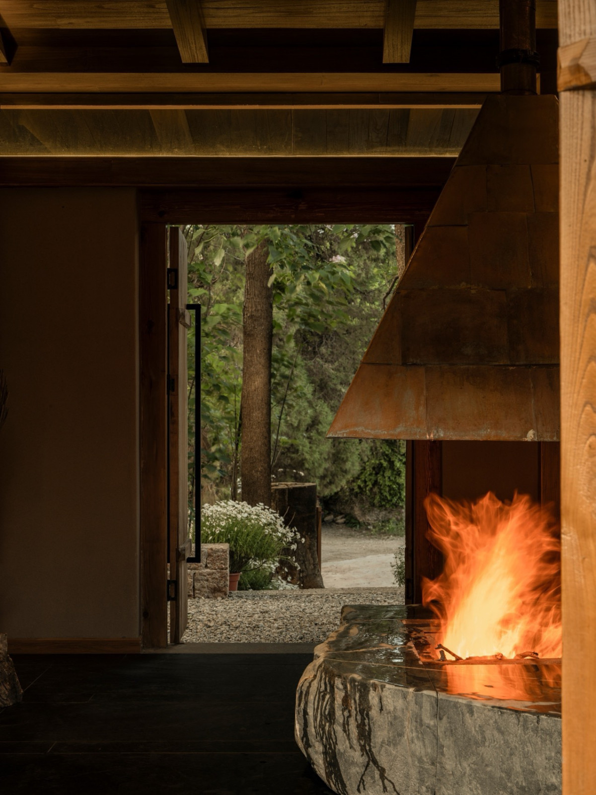 后院茶室“溪竹”取自肆意生长的竹子,清风拂过,溪水环绕。老房梁被完整保留,玻璃屋顶护着它,雨季时内在安静,阳光时植物舒展——主理人谓之“植愈”,有生命的物件,需要被看见、聆听。