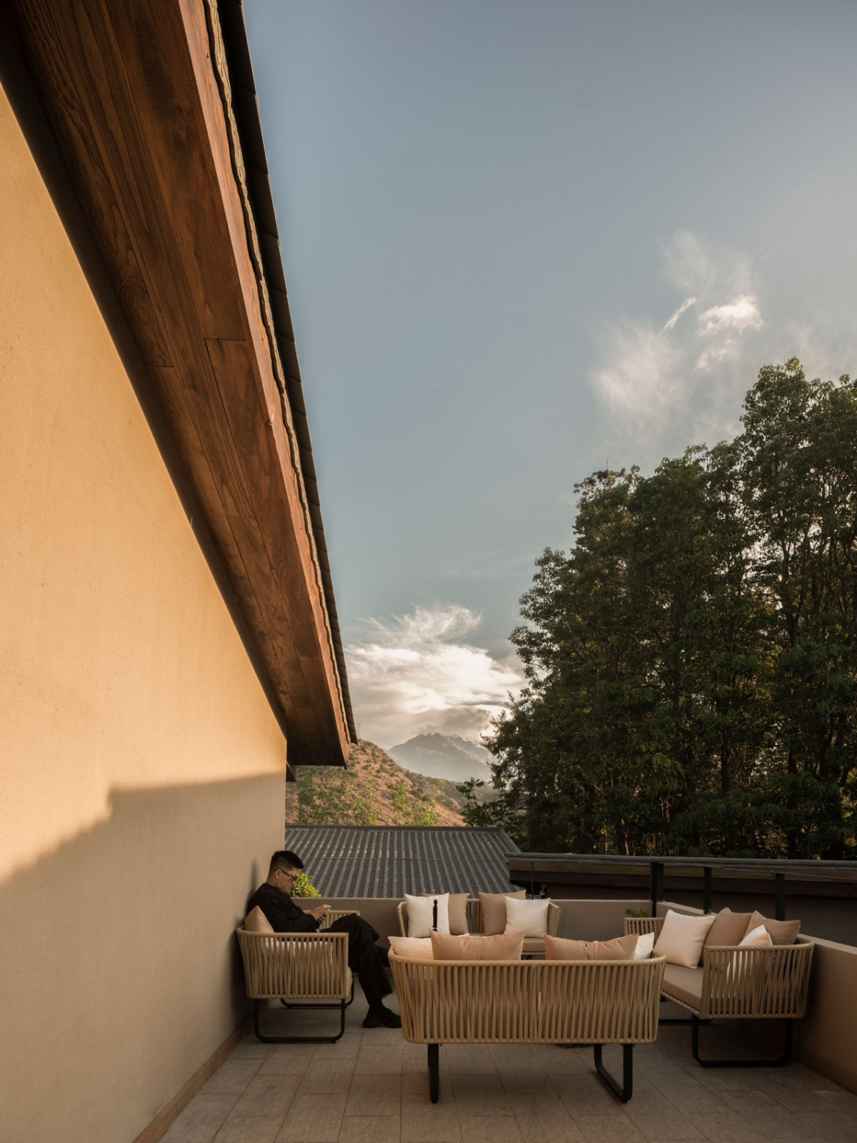 客房以云南各地命名,每间朝向不同,望见各异的山景。清晨叫醒你的,是觅食的松鼠、对话的小鸟,或是楸树开花的声音。