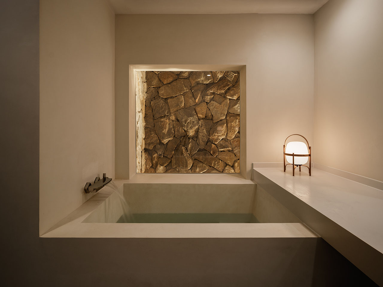 院落将一切整合。游走其中,空间交错开合,动线本身成了一场探索。客房泡池区窗外,造景既为诗意,也巧妙包裹管线——每一处介入皆有缘由。