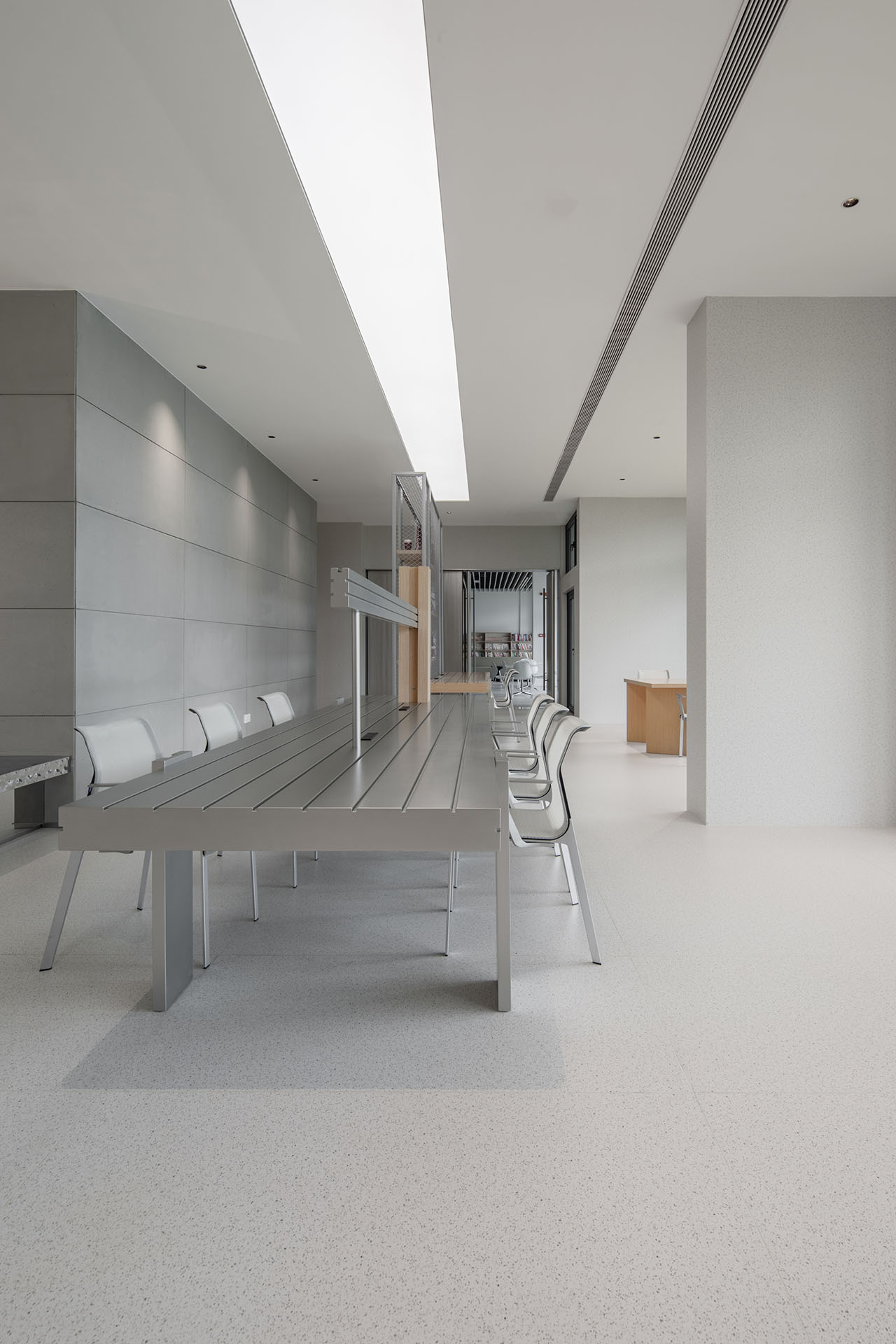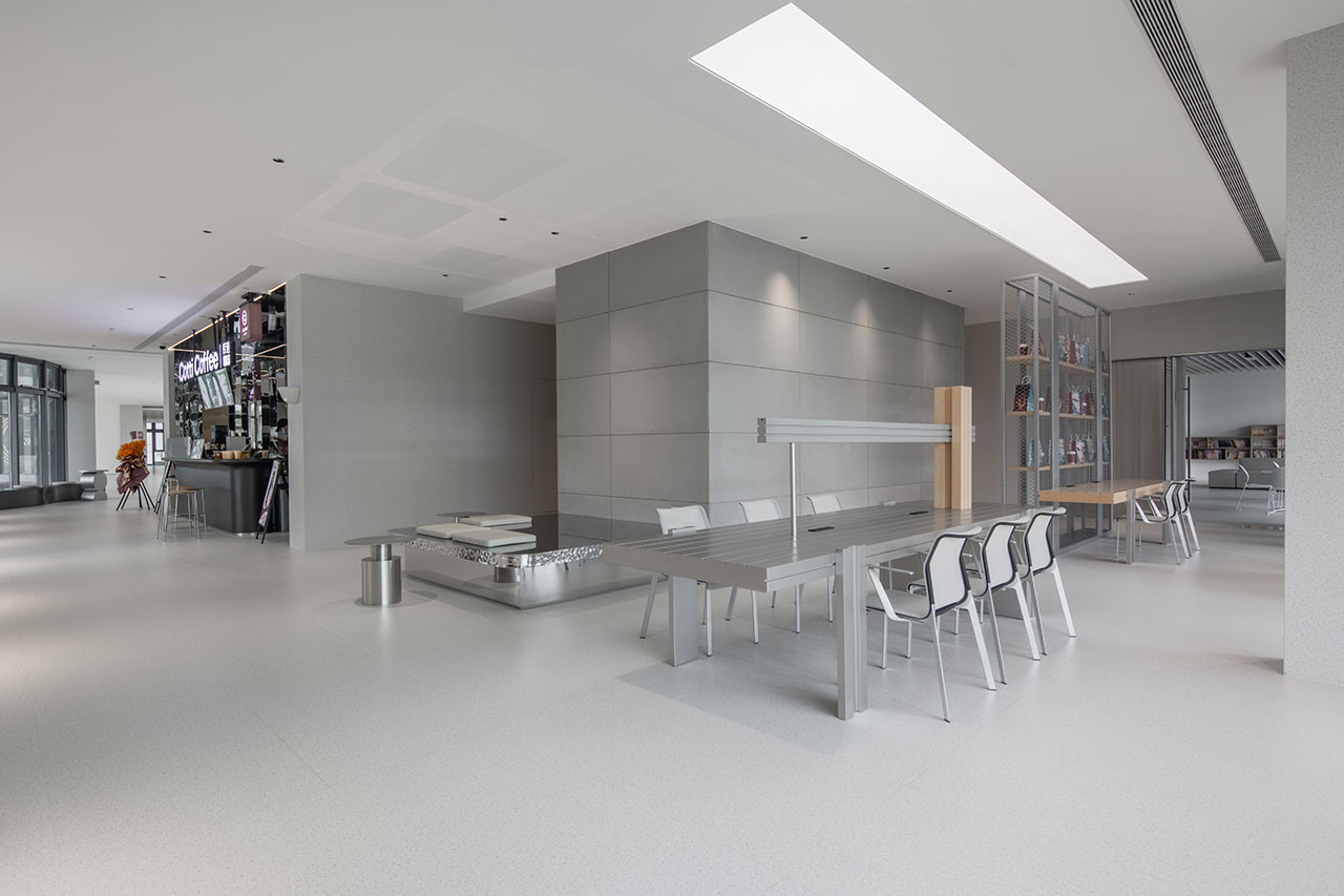 一楼有咖啡吧、便利店、医务室、理发室及四点钟学校。忙碌的一天之后,可以手捧一杯香醇咖啡,享受惬意时光;也可以约上三五同事,围桌闲谈,分享工作与生活的趣事,让钢筋水泥里长出“街区式生活气”。