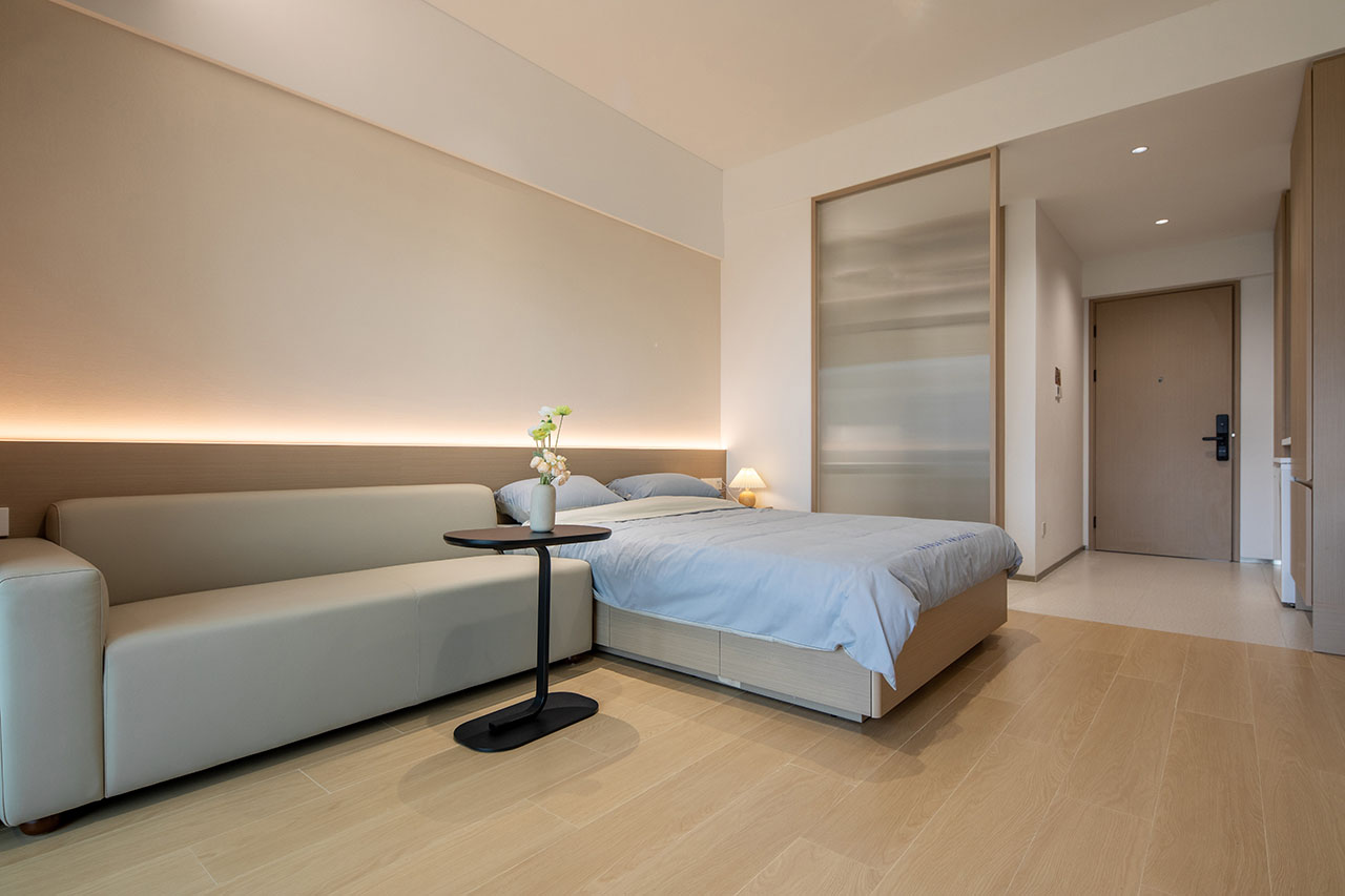 “麻雀虽小,五脏俱全”,单身房的设计为实用主义,没有过多的装饰,注重光线、材料和空间布局,在“小天地”里营造出随性由心的生活,汲取能量、释放活力。
