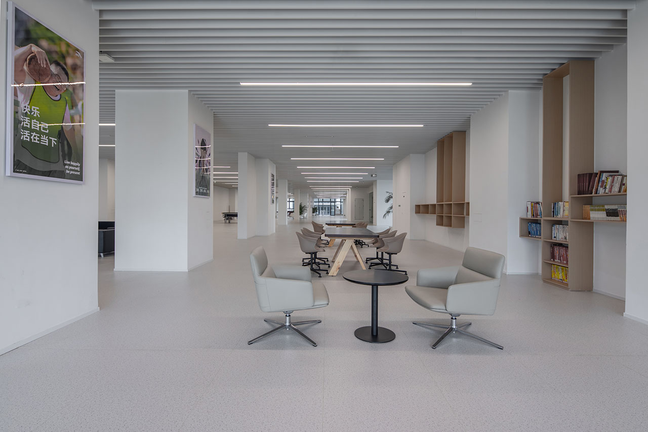 员工公寓不仅是住宿场所,更是一个充满活力与温情的社区。前厅开阔通透,摒弃繁杂隔断,视野流畅无阻;设计师将安踏集团的品牌元素、企业文化融入其中,打造出一个全新的“工作&生活”新体验。