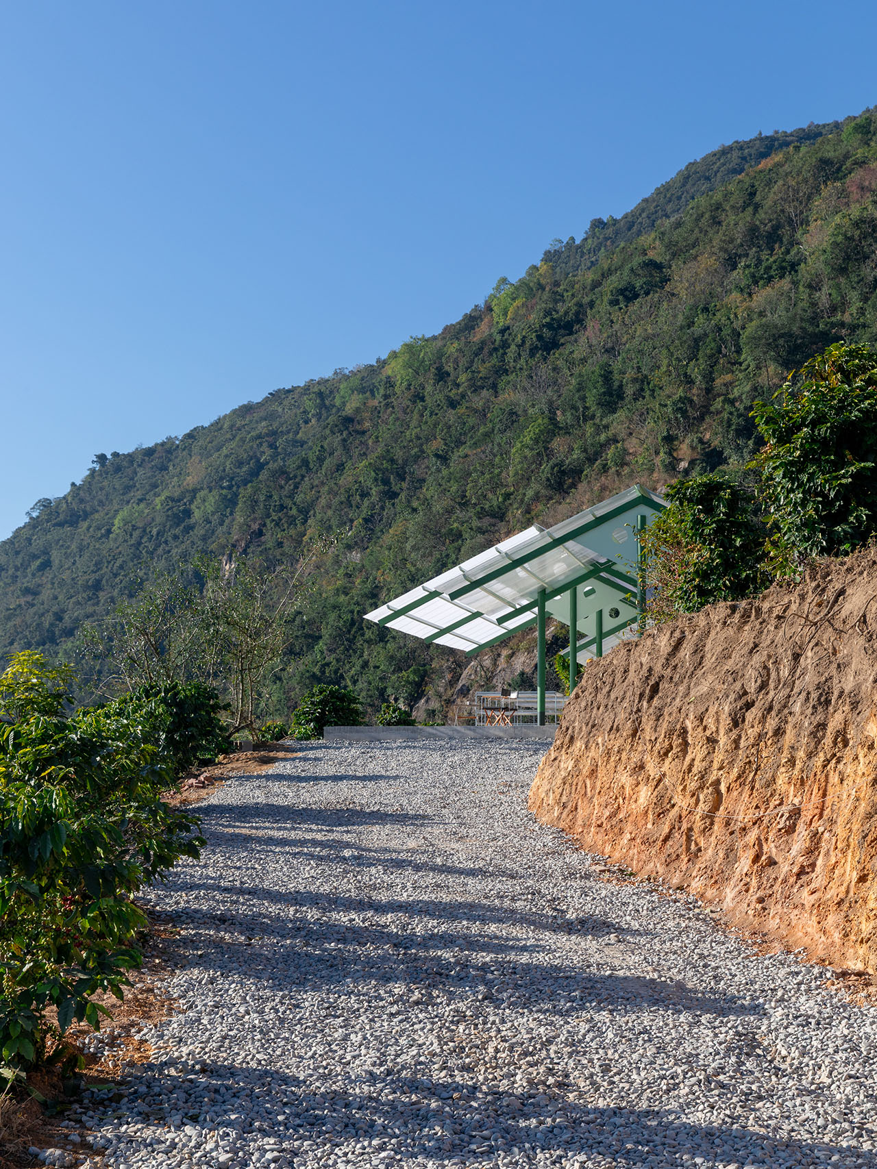 阳光东升西落,强烈的大地氛围包裹着这片轻盈的构架。行走其间,咖啡豆的香气与山风交织,每一次驻足,都能感受到与山脉平行的绵长呼吸。