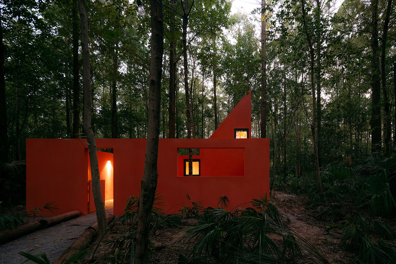 “红磨坊”不仅满足了使用者离群索居、回归自然的精神诉求,也通过“小”的尺度拉近了人与材料、环境的关系。在这里,居住行为与风声、鸟鸣、炉火紧密相连,成为一种沉浸式的自然体验。项目以大胆的色彩和谦卑的建造方式,诠释了关于居住的另一种可能——它既是私人的精神容器,也是自然中一件热烈而纯粹的艺术品。