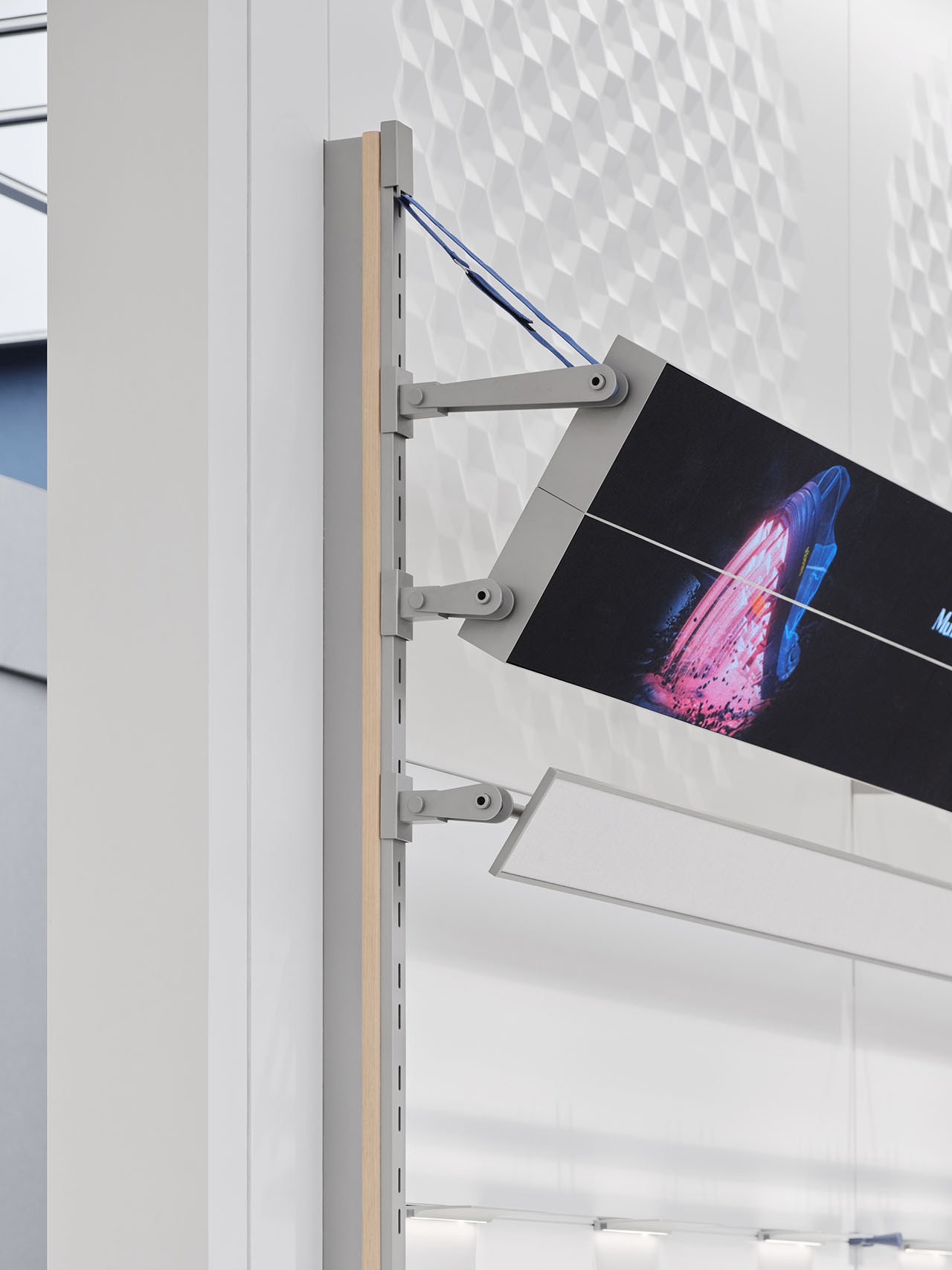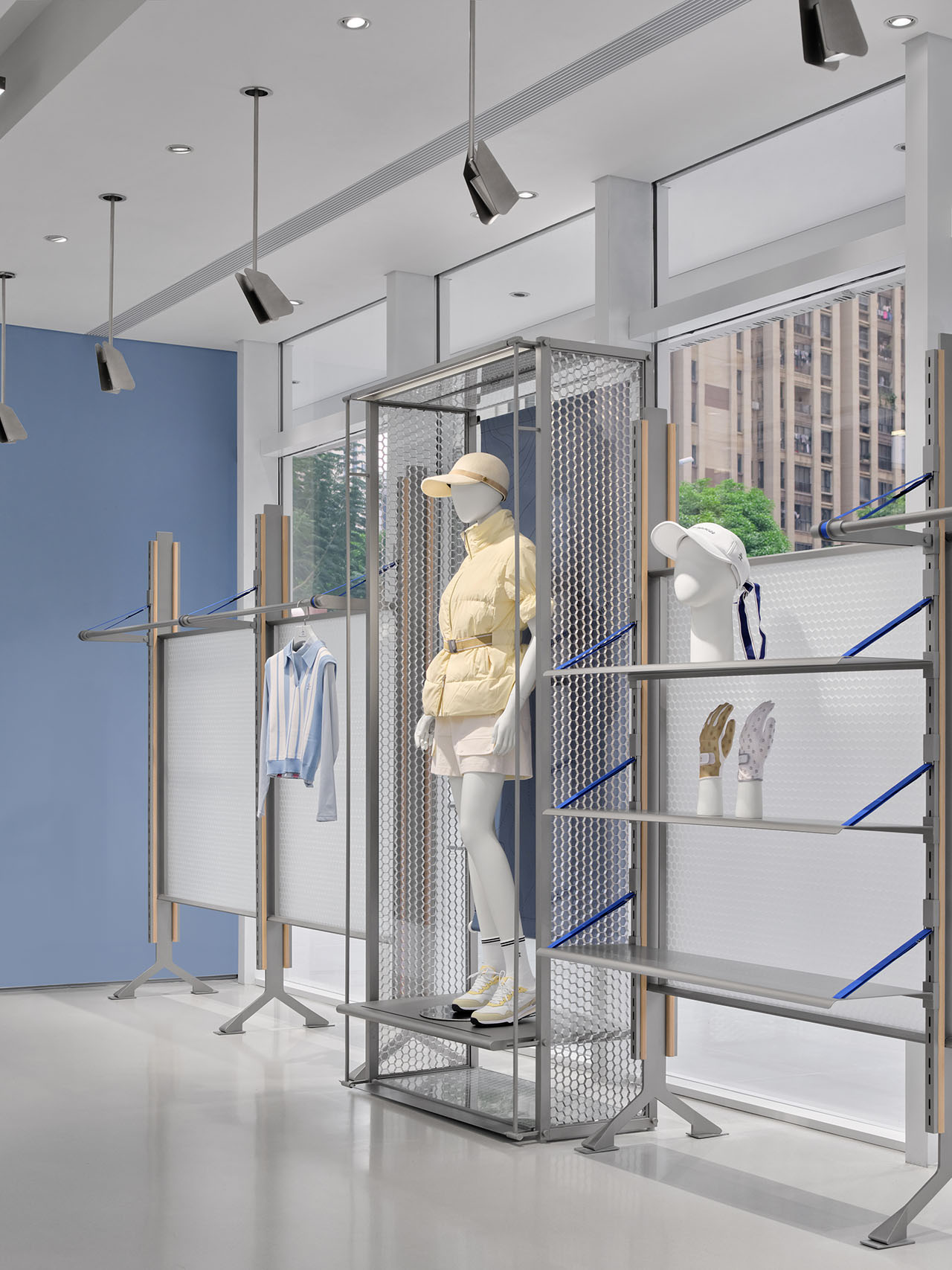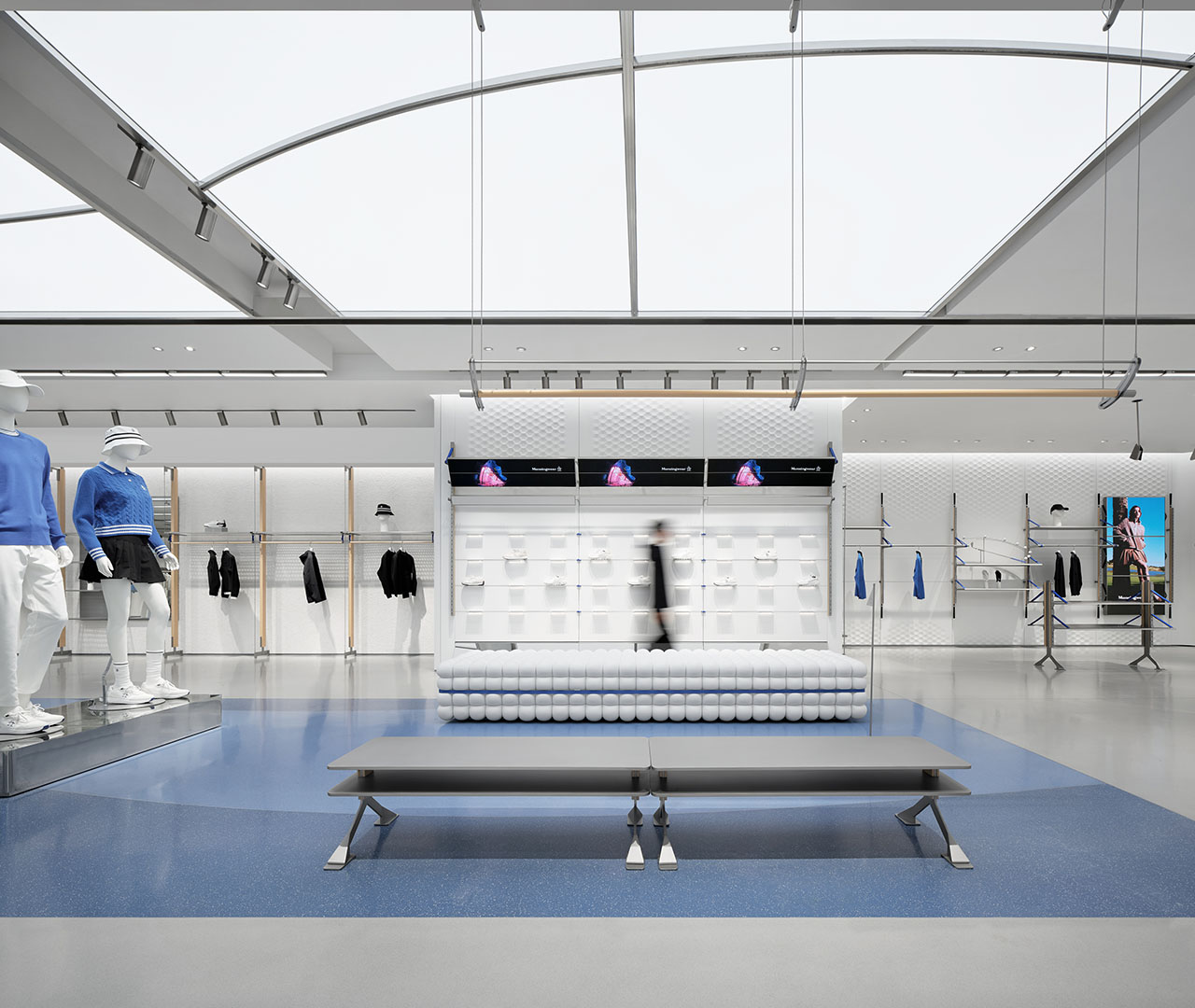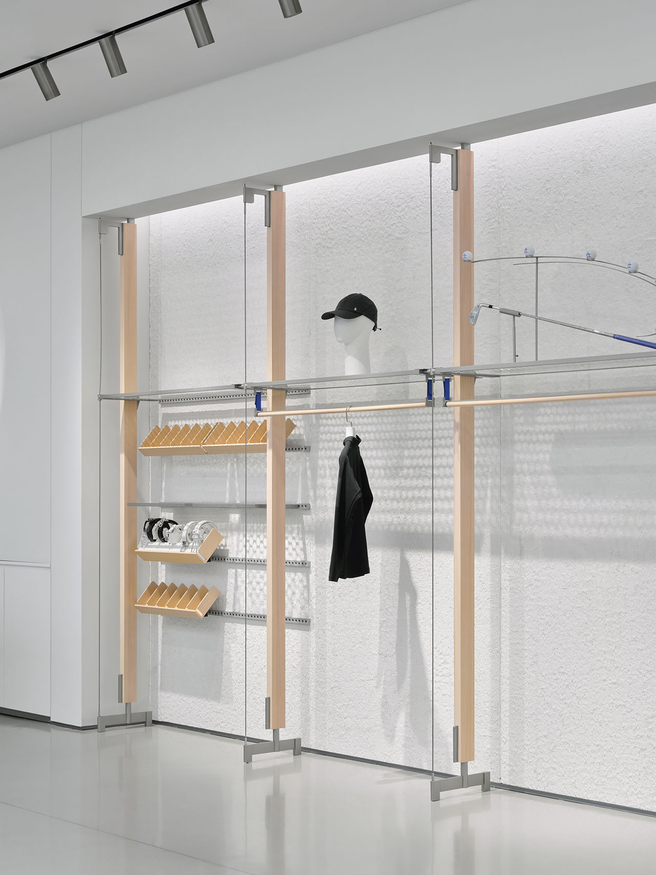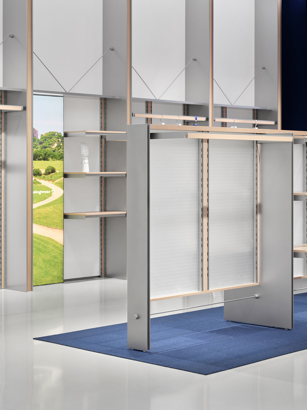 设计团队将高尔夫球具元素拆解并融入货架系统的设计语言之中,藉由材质的交织碰撞,捕捉运动过程中的动态能量,传递出高尔夫运动所蕴含的活力与趣味,进一步诠释品牌所倡导的“高尔夫生活方式”。