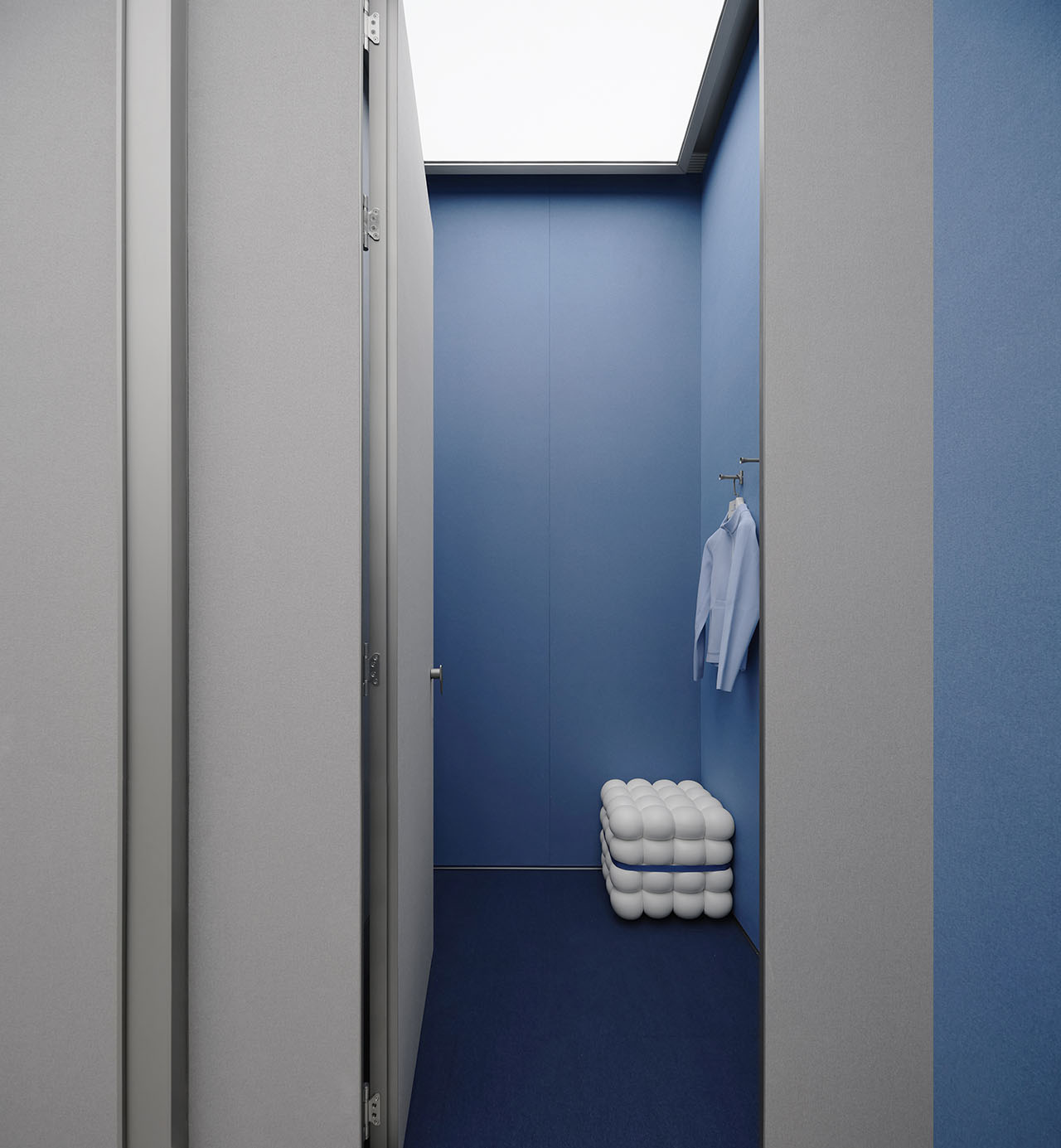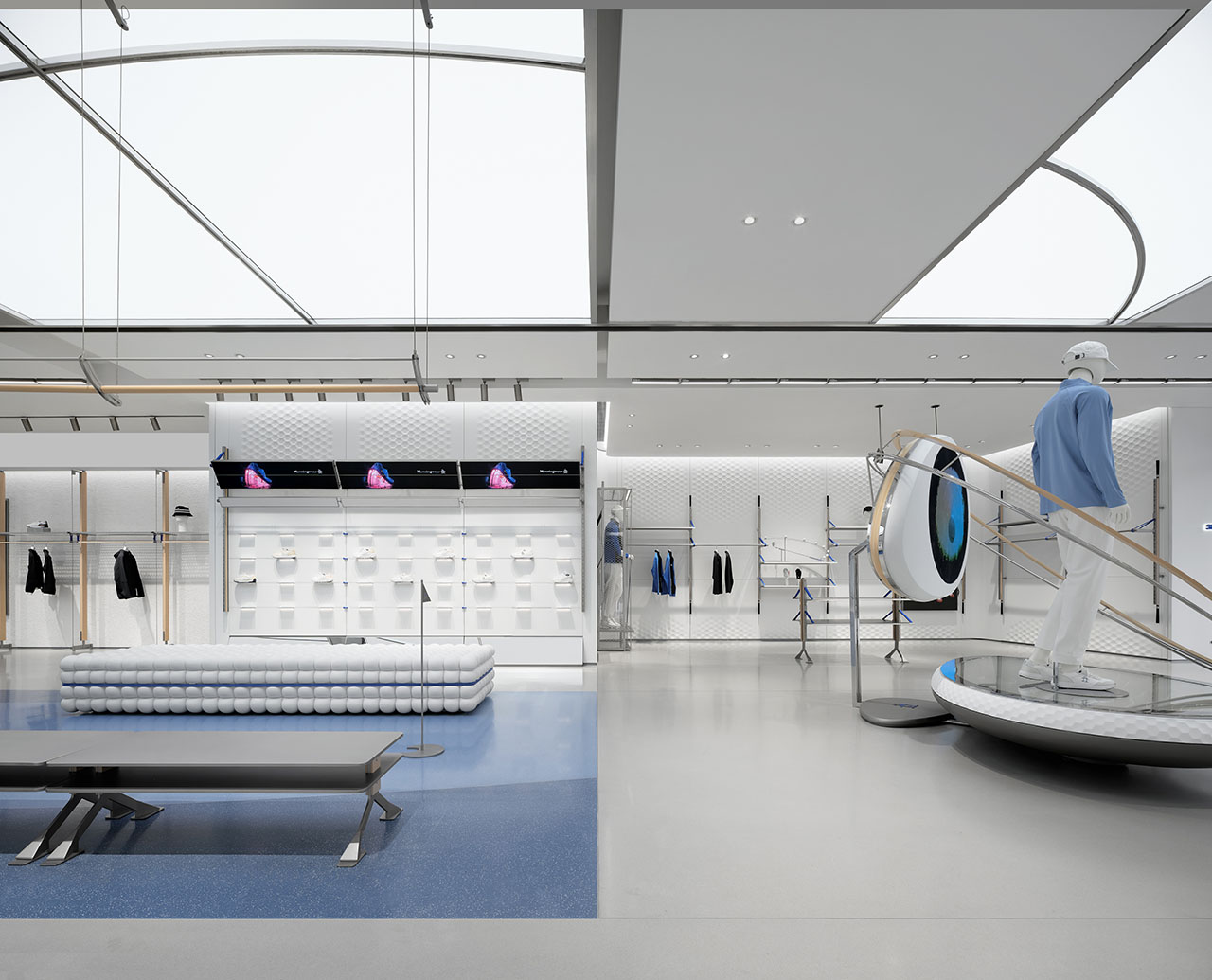 店内空间选用蓝白品牌色作为主色调,营造活力与舒适度兼备的整体氛围。
