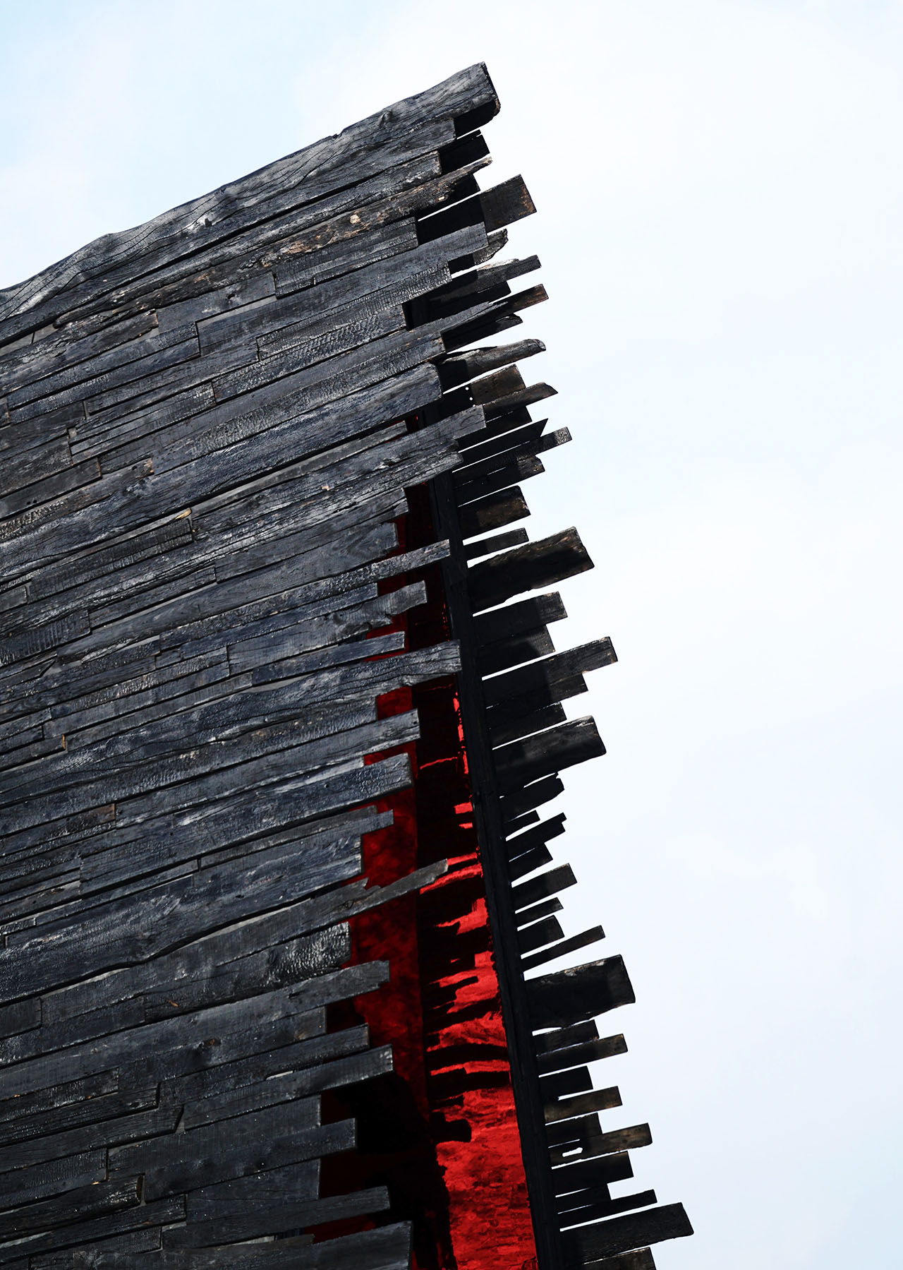在长白山的雪原上,一座深黑色的木构建筑静静地面向远山。它粗粝、沉稳,像大地自然生长的一部分。当你推开门的瞬间,暖红的内壁将你包裹——那是火山深处涌动的颜色,也是风雪中为你保留的温度。