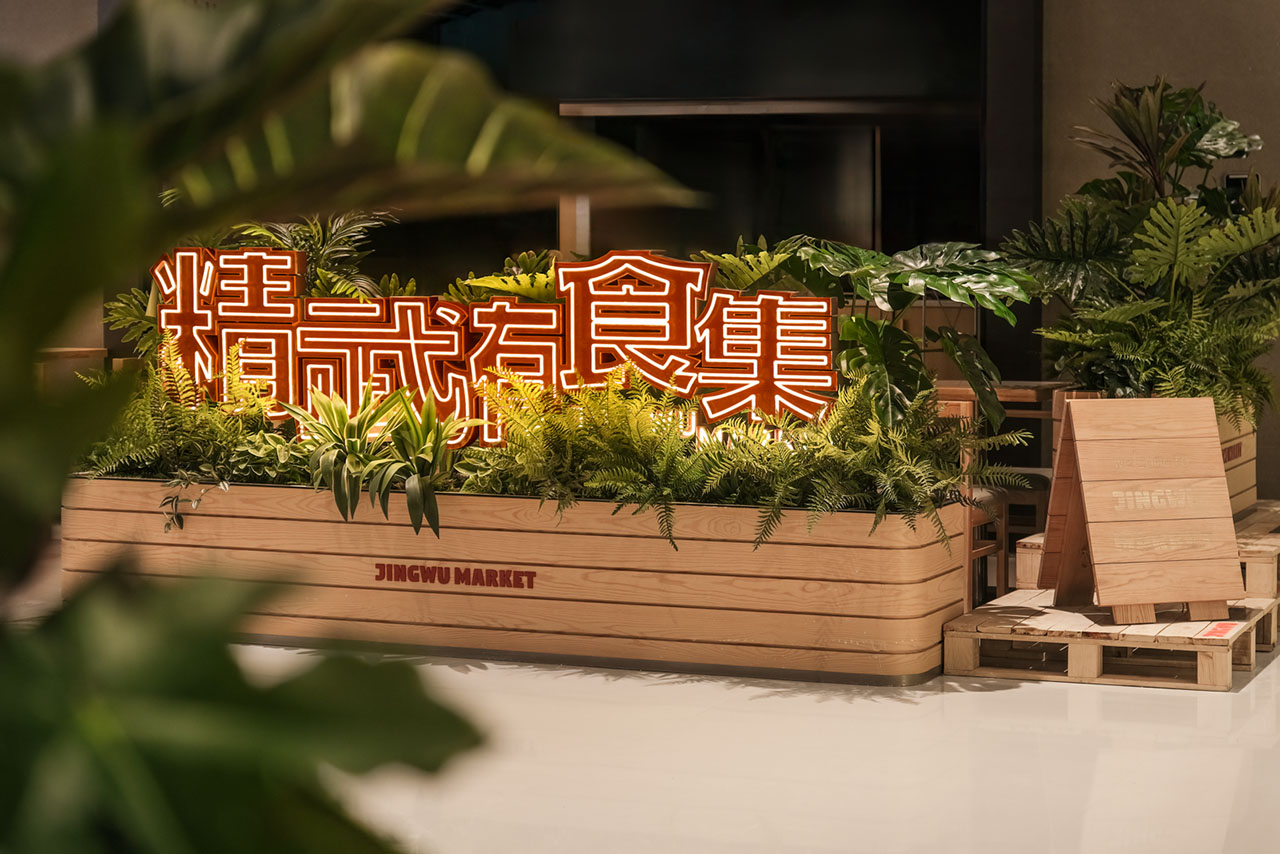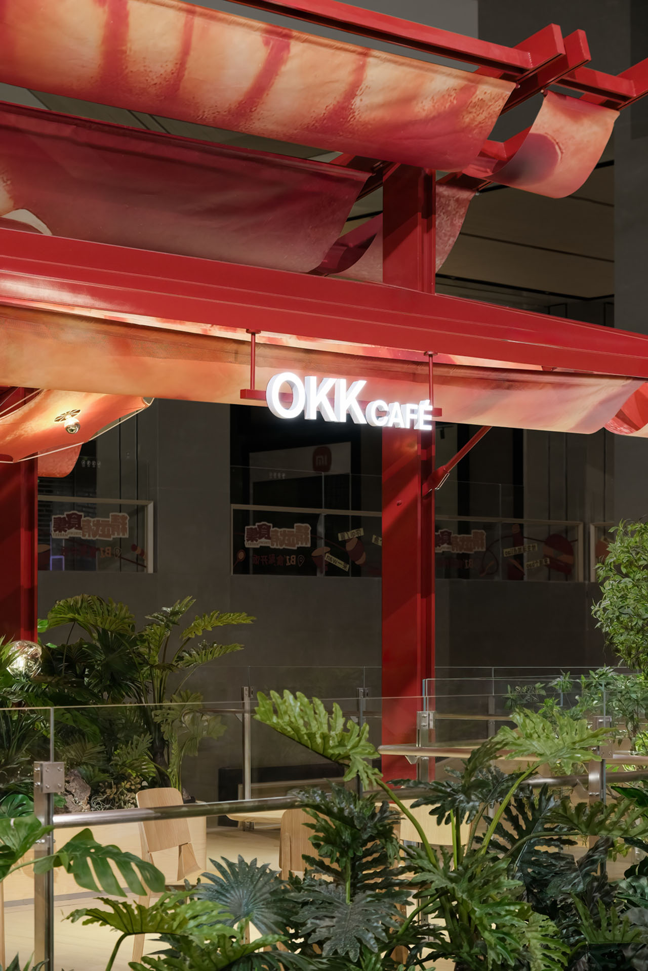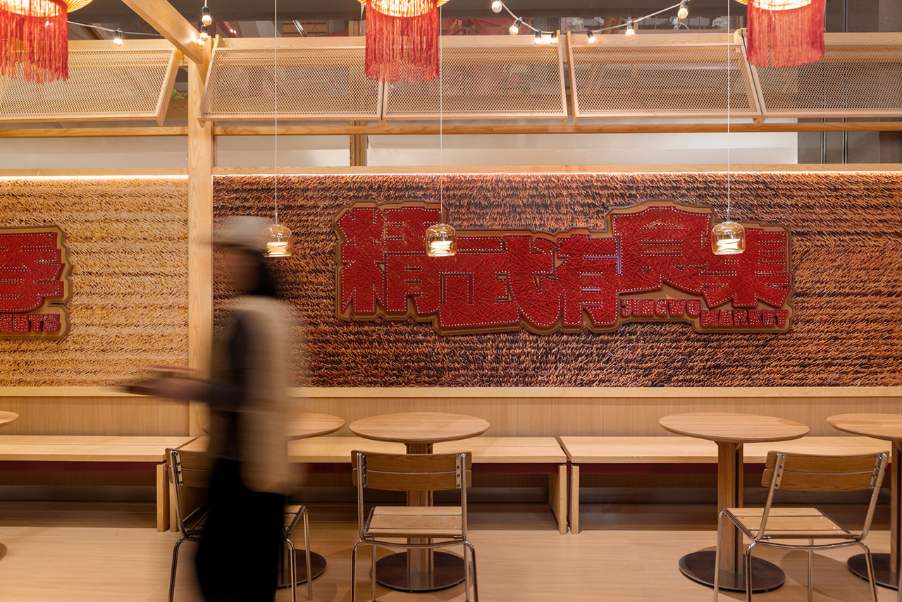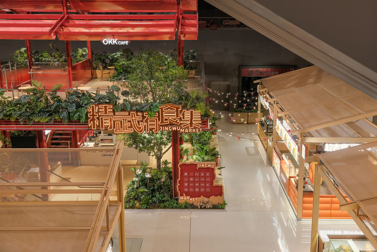 设计以“檐下烟火”为核,用层层叠叠的红色木构屋檐,在都会深处重构起街巷般的围合与归属。穿行其间,温润的红砖与木质肌理包裹着视线。统一的斜顶聚落,让烟火气有了形状。你可以从容地倚坐在廊柱旁,感受食物温热与空间光影交织。