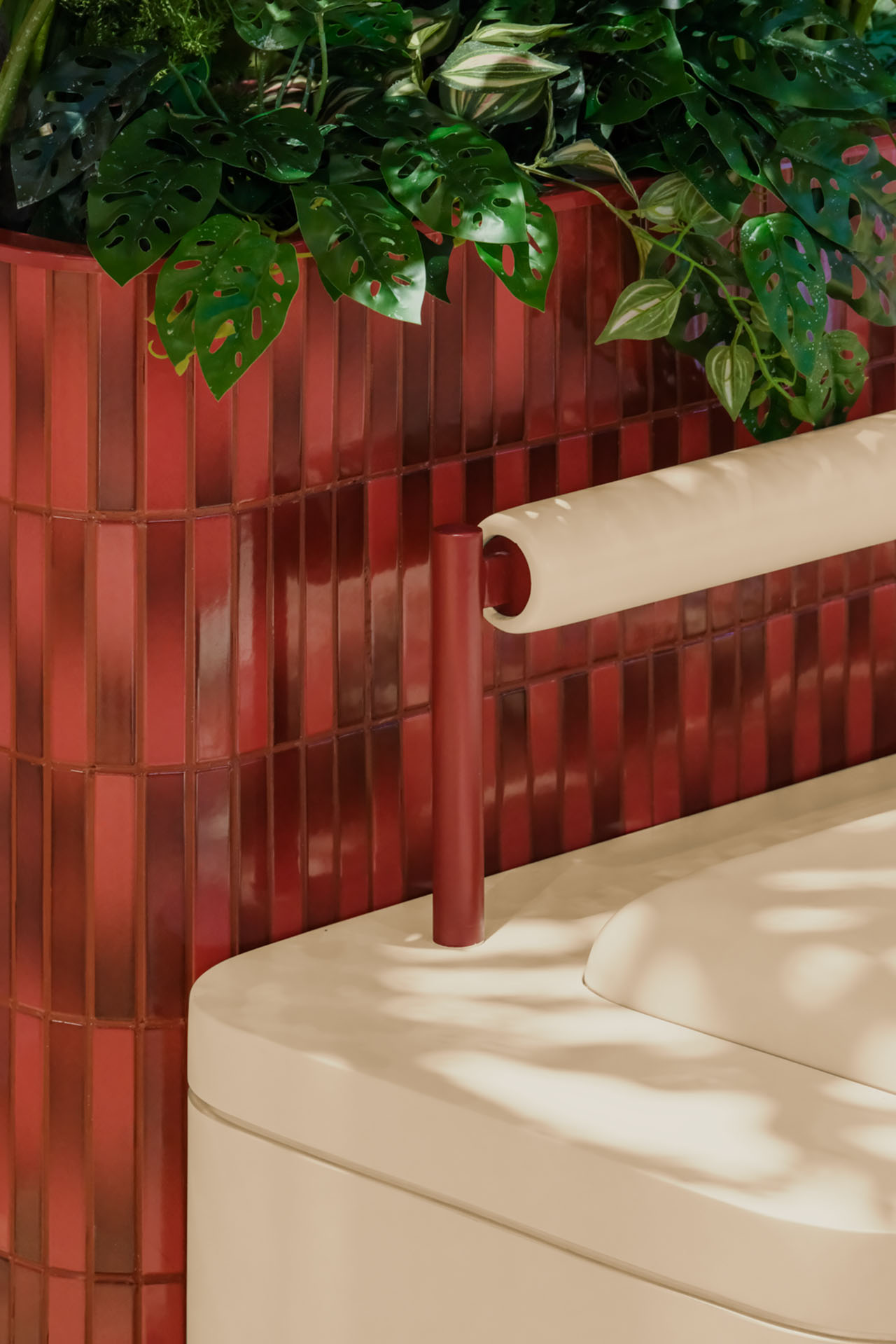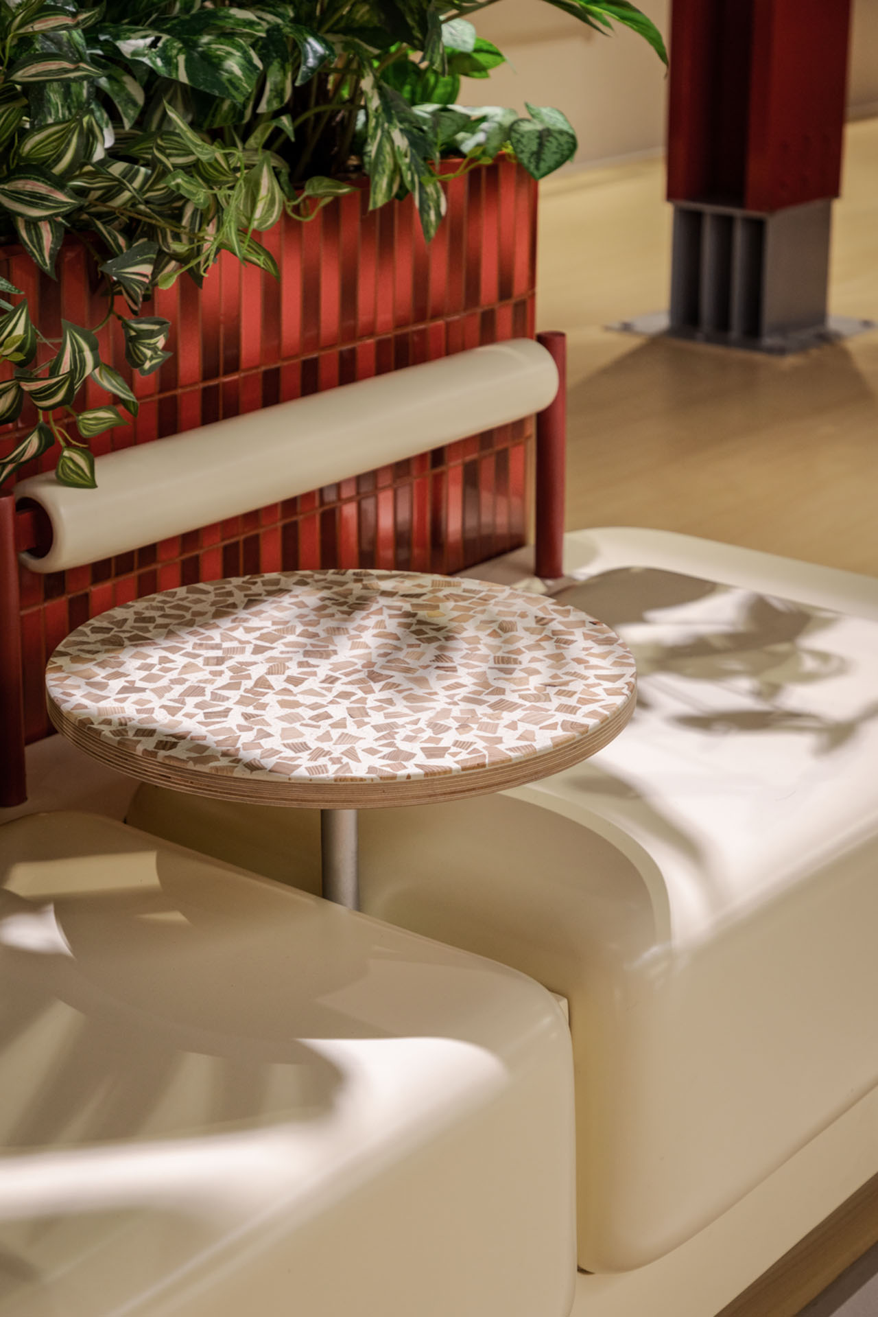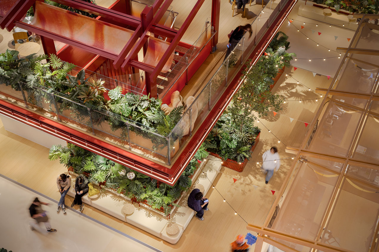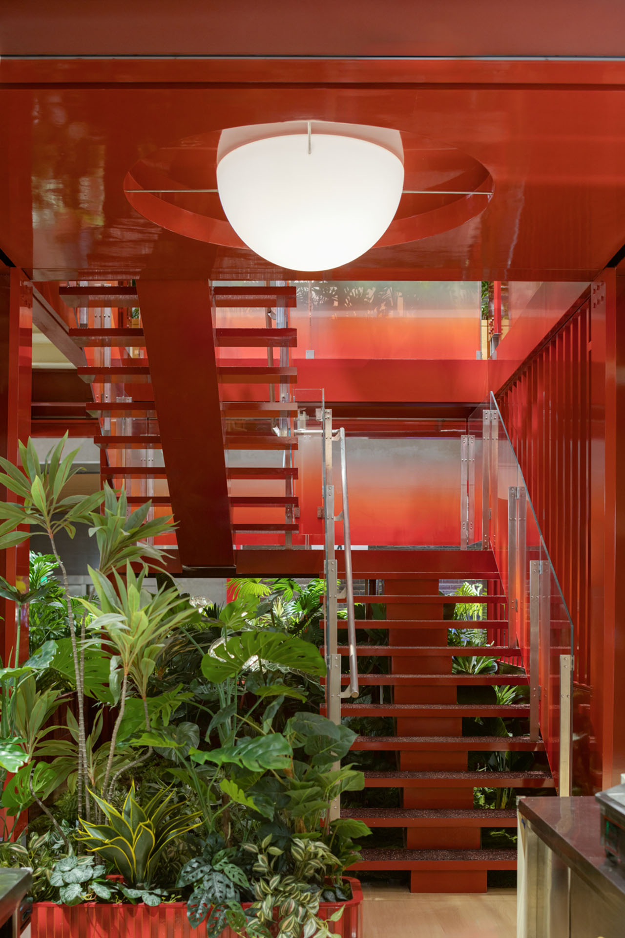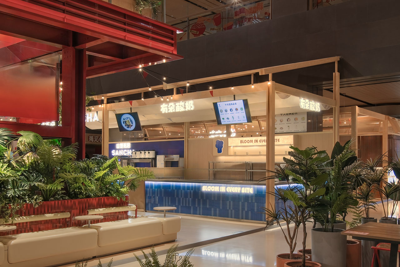 设计以“檐下烟火”为核,用层层叠叠的红色木构屋檐,在都会深处重构起街巷般的围合与归属。穿行其间,温润的红砖与木质肌理包裹着视线。统一的斜顶聚落,让烟火气有了形状。你可以从容地倚坐在廊柱旁,感受食物温热与空间光影交织。