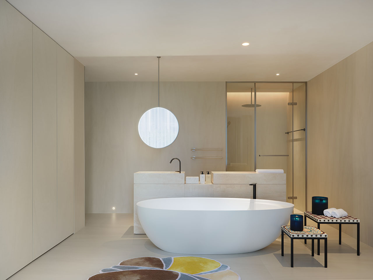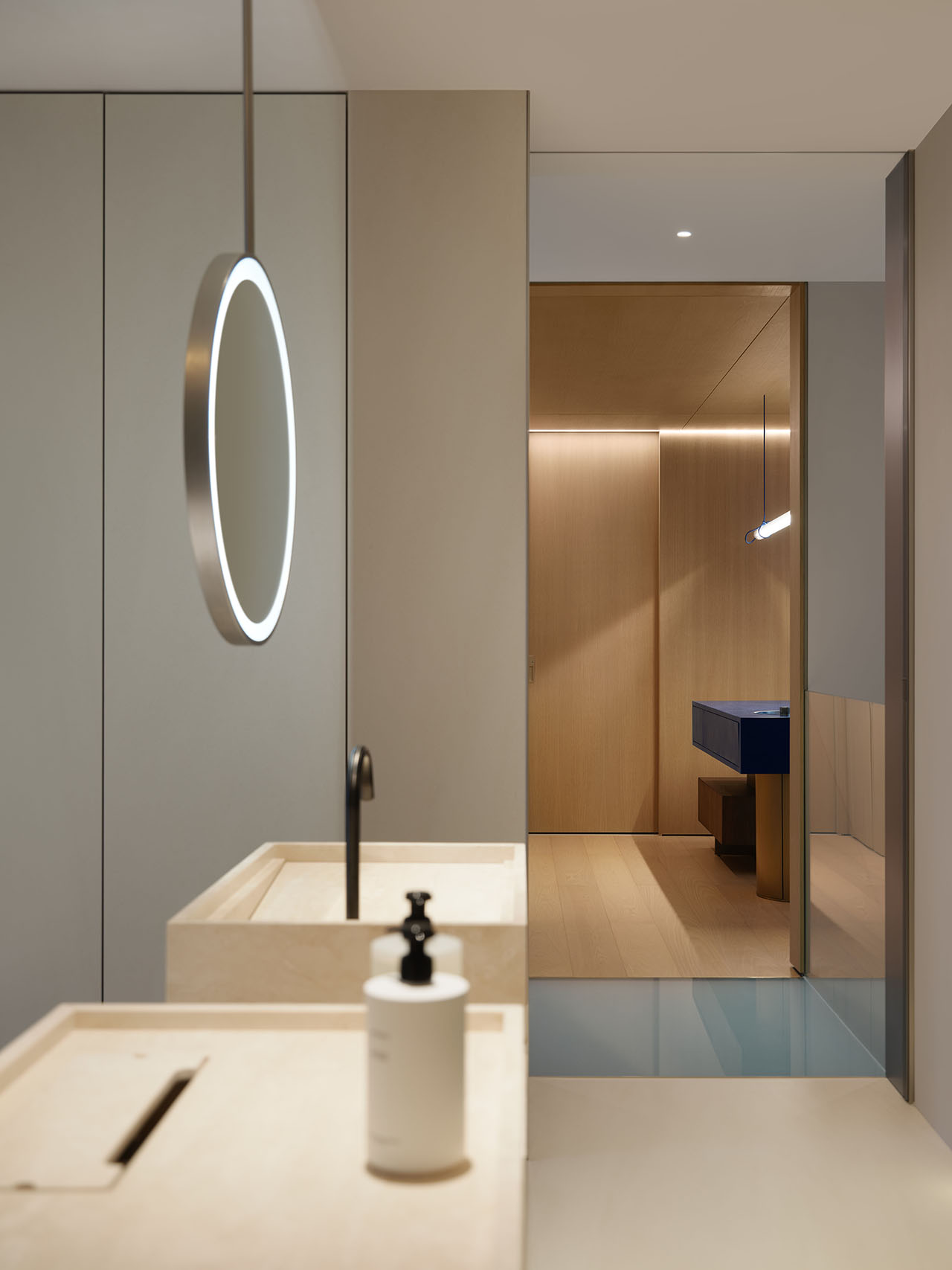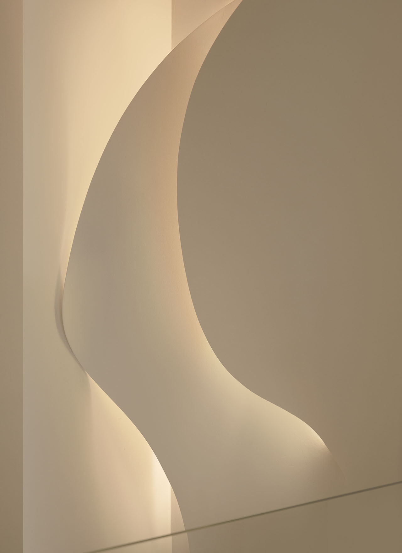 五层茶室内,弧形墙顶延续向上张力,灰调墙面平衡东方雅致。SPA区以柔弧墙面收束情绪,功能区隐入墙体,让休憩与生长调性自然相融。