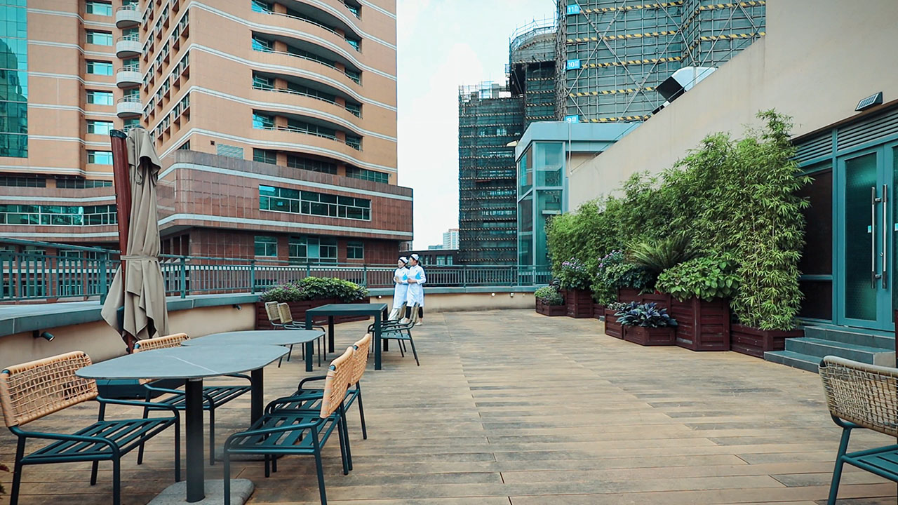 建筑是物质性和精神性的统一体,其中物质性是相对显性的元素,往往通过造型、功能、空间、结构等方面呈现出来,是相对容易学习和掌握的内容,也是建筑最基本的属性。好的建筑往往通过恰当的设计技巧呈现出良好的物质性特征;同时通过物质性的充分展示,将人的主观体验、精神性感受很好地体现出来;因而建筑的物质性是通向精神性的必要媒介。建筑的精神性虽由建筑物质性传递出来,但人的体验感受才是建筑精神性得以体现的途径,也就是说没有人就没有建筑的精神性。我们用“建筑六式”这些技术措施和手段去实现省医餐厅楼的存量优化和整体品质提升,最主要的目的是希望通过空间环境的优化提升,探讨形而上的“建筑之道”——既精神性的提炼与表达。于是很有意思地,我们的关注点又重新回到“人”这个层面上来。