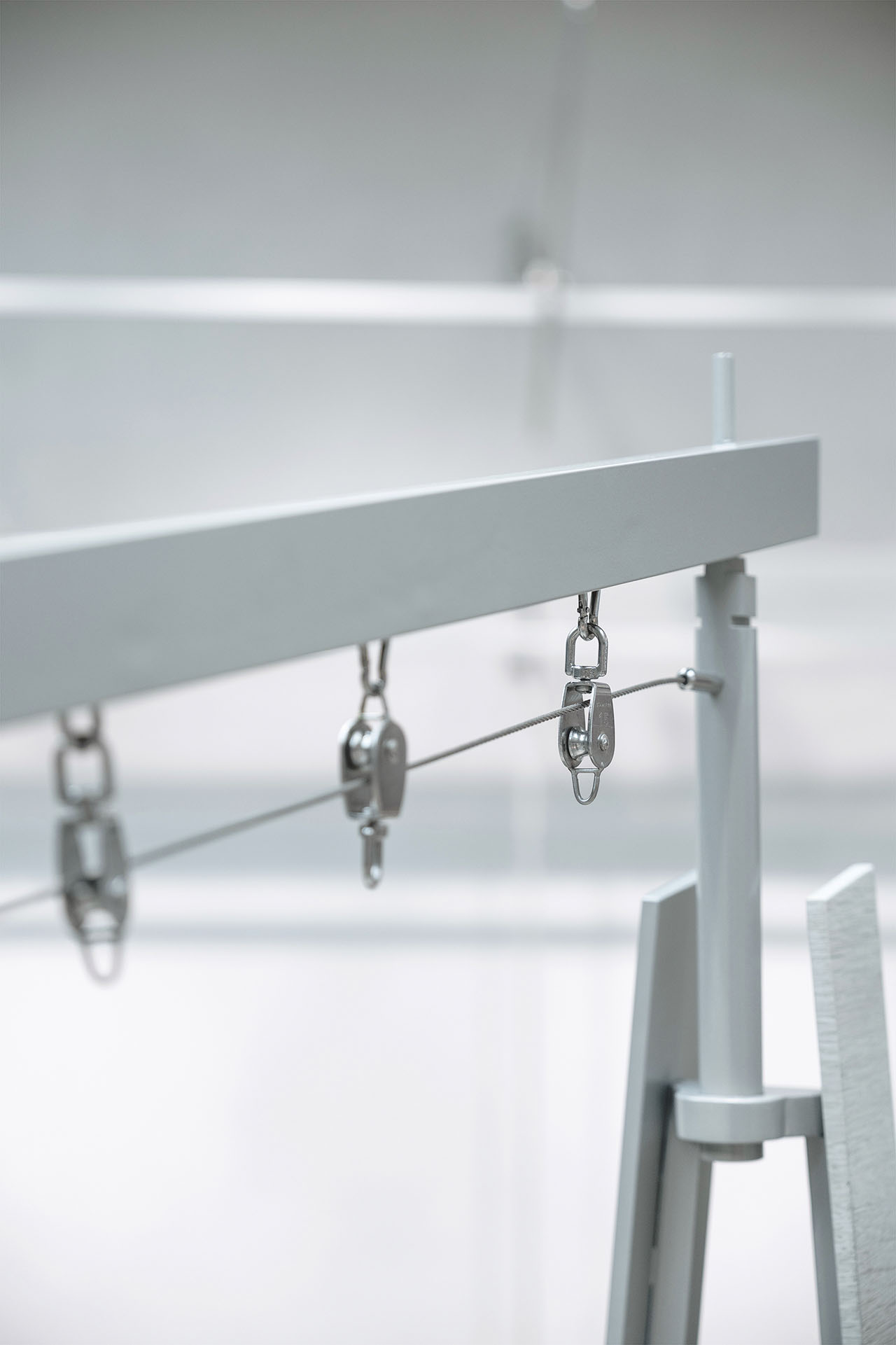 悬拉索结构是项目的关键细部,其灵感源自帆船配件中的滑轮与帆夹;墙面布置的陈列架则是帆船中扶手栏杆、游泳梯等元素的抽象表达。