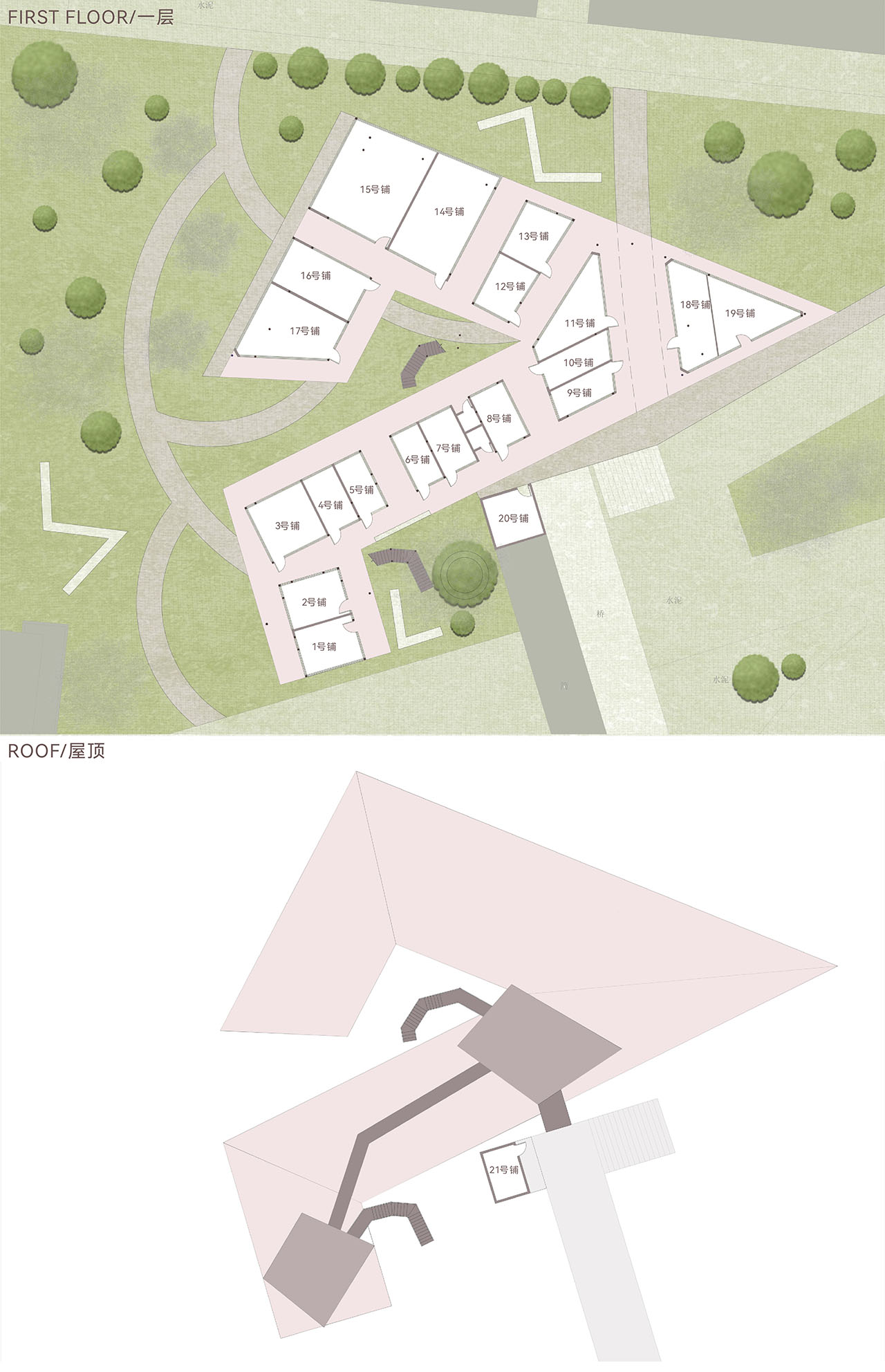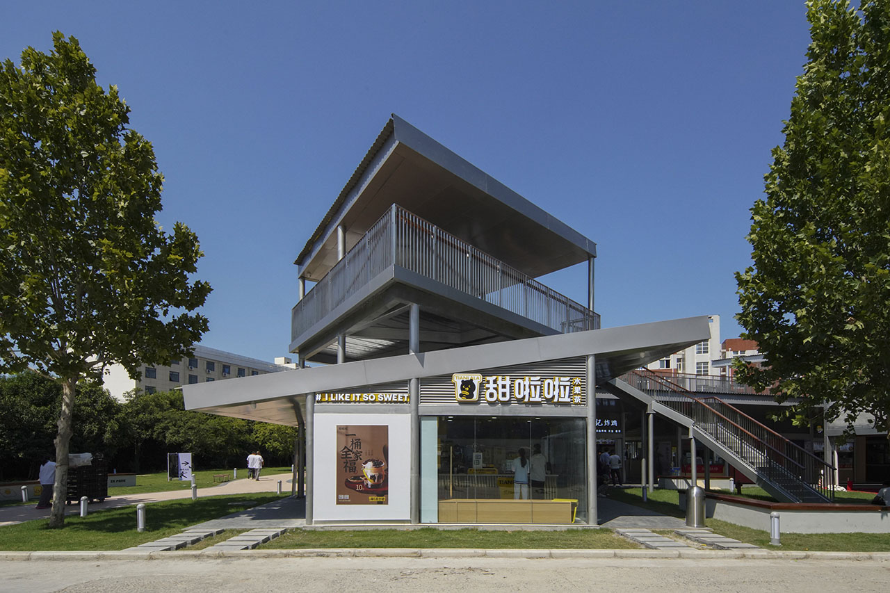 这是一次在大学校园内的建筑规划实践,在占地5000平米的学校空地上,规划出1500多平米的建筑面积和3000多平米的绿地,最终成为老校区的一座小型公园shopping mall。其中需要容纳20多家商业店铺,公共绿地,以及作为衔接学校操场、食堂、宿舍楼的公共集合地。我们的任务就是在保证建筑规划整体要求的基础上,充分利用空间,满足校方,学生日常生活,以及二十多家商铺的共同诉求。把这些复杂融合成为一个简洁的整体。逻辑脑和想象脑同时运行,不断的调整建筑的形态和内容,既要兼顾和整个校园建筑群的关系,又要考虑每家商铺的面积,朝向,以及门前的动线和绿色。设计规划反反复复进行了两个月的时间,最终在功能上和校方,商管方,以及这二十多家不同店铺的商家们,达成一致。而建筑空间体验以及形态就更多是我们对于建筑哲学和空间语境的探索和表达了。
