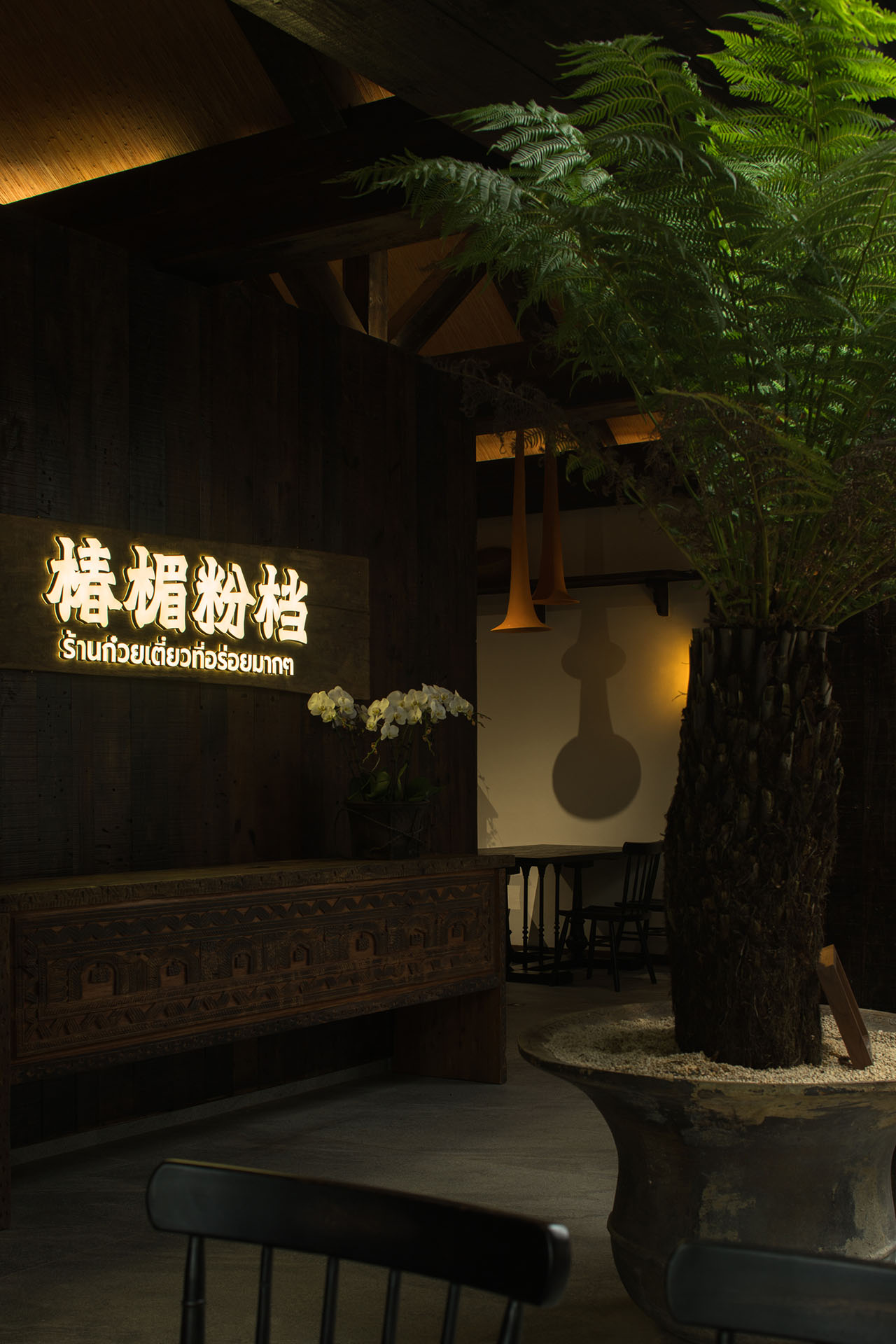 汤底熬煮的声音、升腾的热气以及草本、辛辣与酸香在空间中自然扩散,与植物、木构和空气流动交织在一起。