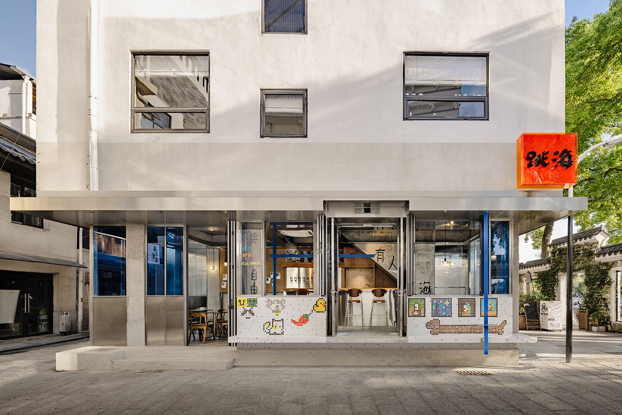 跳海酒馆杜甫江阁店坐落于长沙湘江河畔文庙坪,旨在为向观光产业转型的该市蓬勃的青年社群提供啤酒餐饮服务,并试图在此老旧居民街道营造一隅跨越边界的多元文化空间。