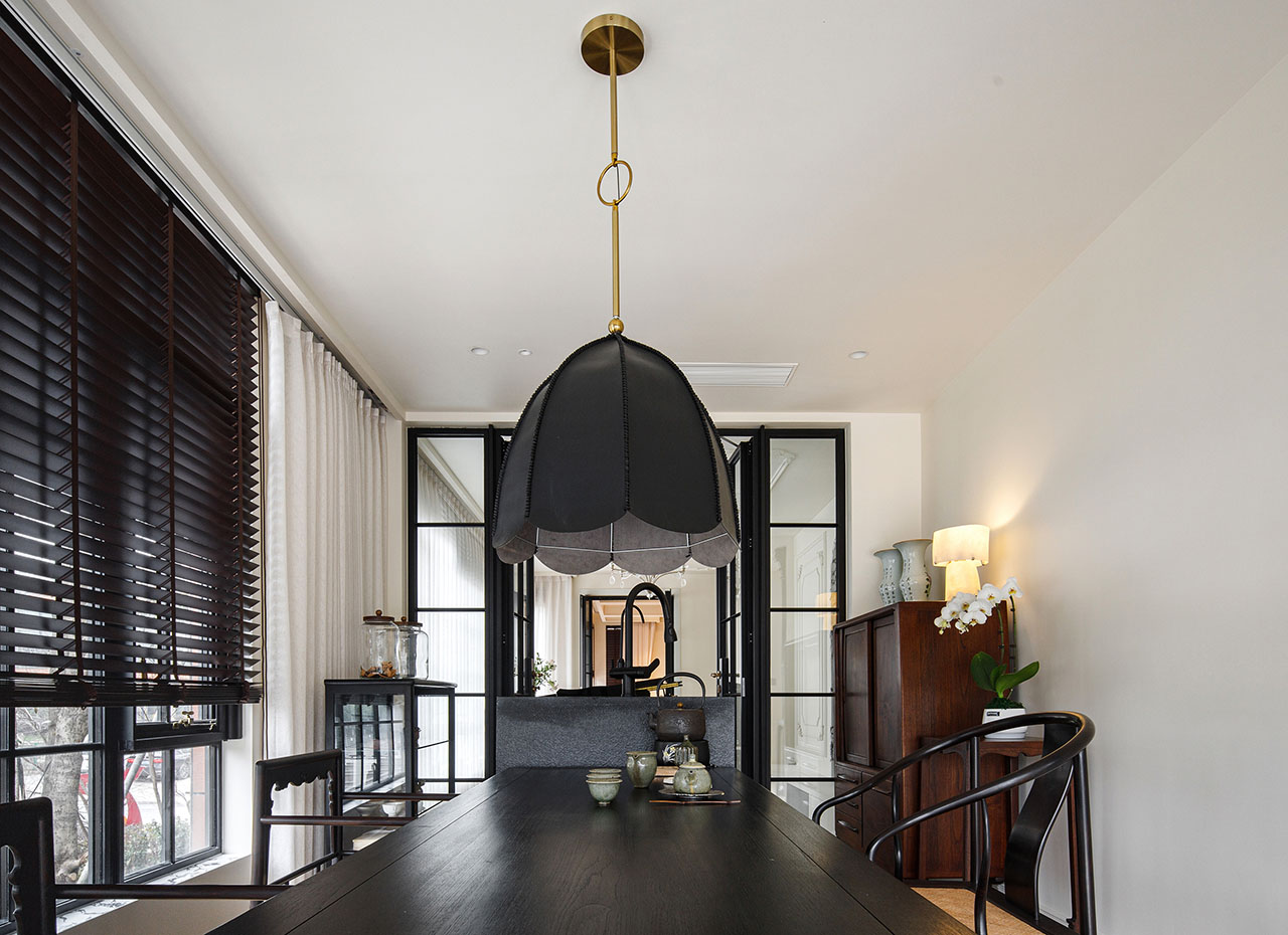 茶室窗前的树影透过百叶,投下斑驳的时间印记;半开放的琴房用两扇透明格门围出演奏区,既独立又充满仪式感,满足孩子对音乐舞台的向往。