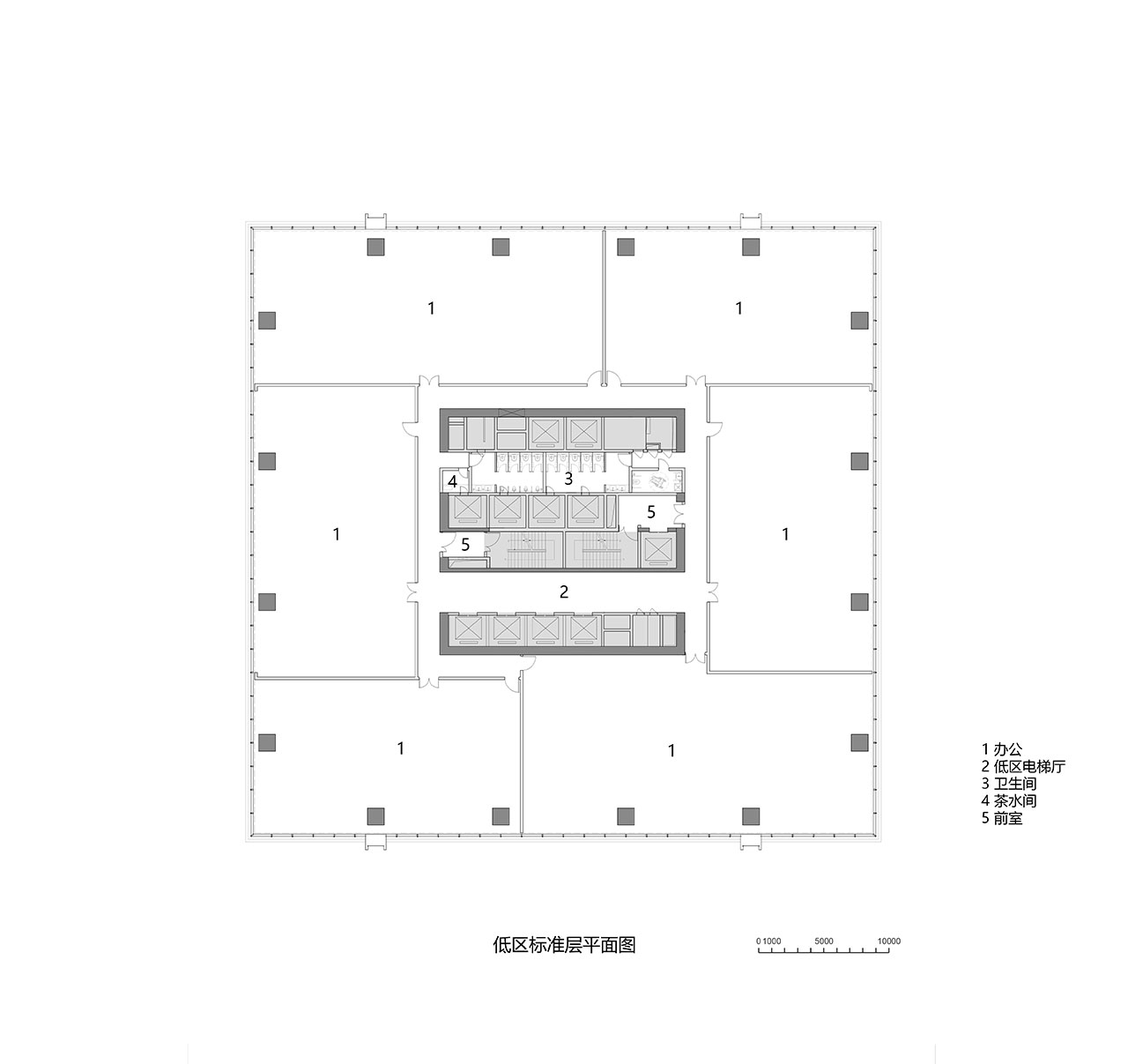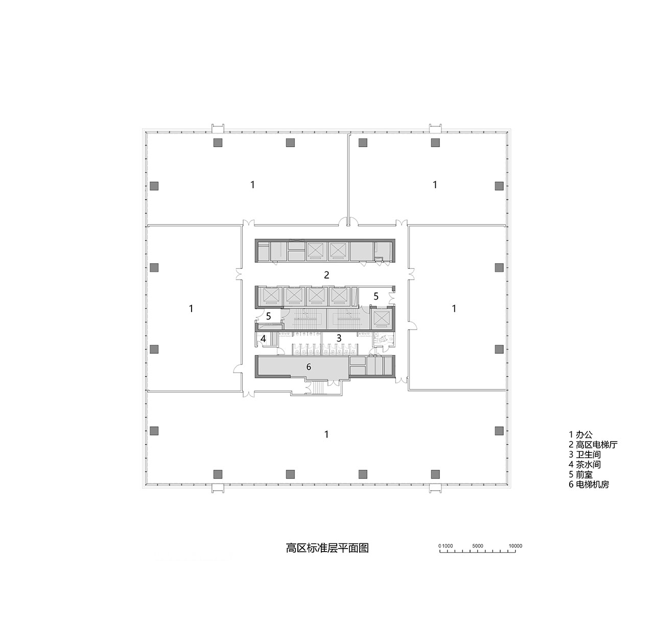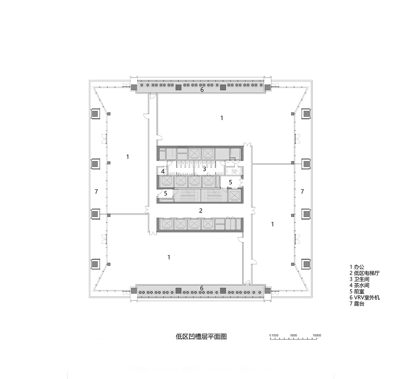 这种对于空间的解放不仅限于大堂,在避难层的可用空间里也存在。