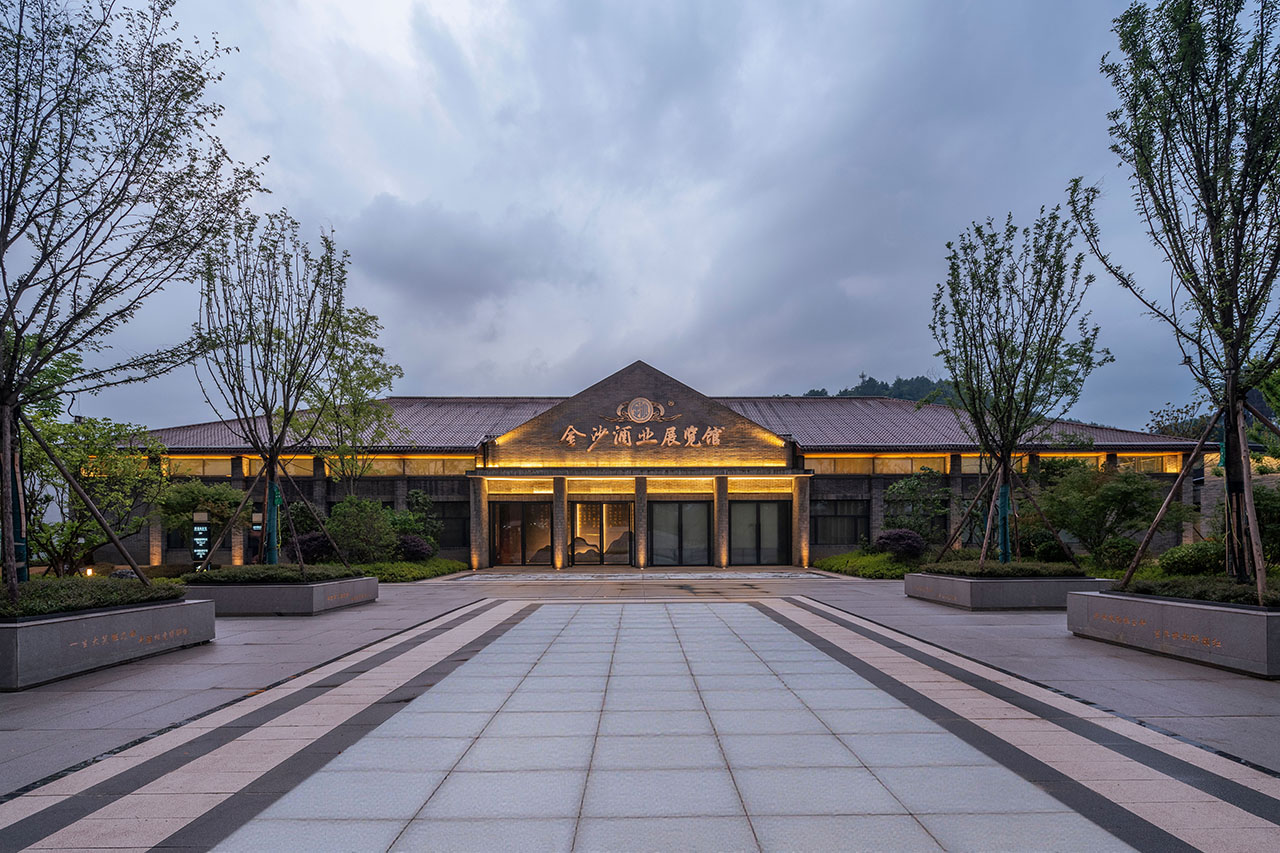 园区设置四栋主要功能建筑,分别为金沙酒业展示中心、酱酒博物馆、金沙酒体验中心,金沙酒业研发中心。功能设计聚焦在 “三重衔接”,成为串联多方需求的枢纽。