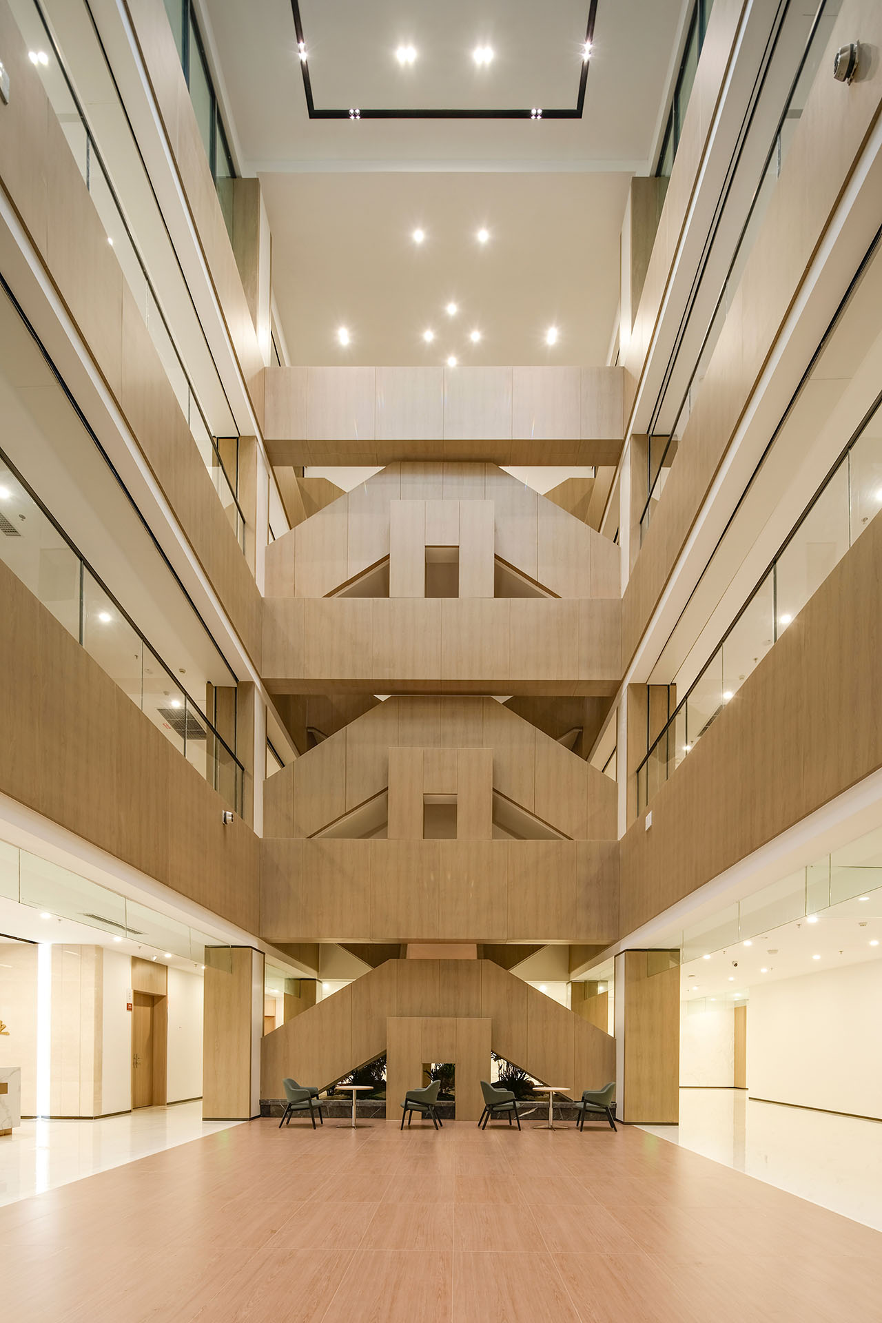 结合地面景观、中庭到达空中平台” 构建起竖向交往网络,再配合各层嵌入的共享洽谈区、研发讨论角,进一步强化团队交互频率,让研发楼既是高效工作场所,也是酒业技术交流的立体平台。