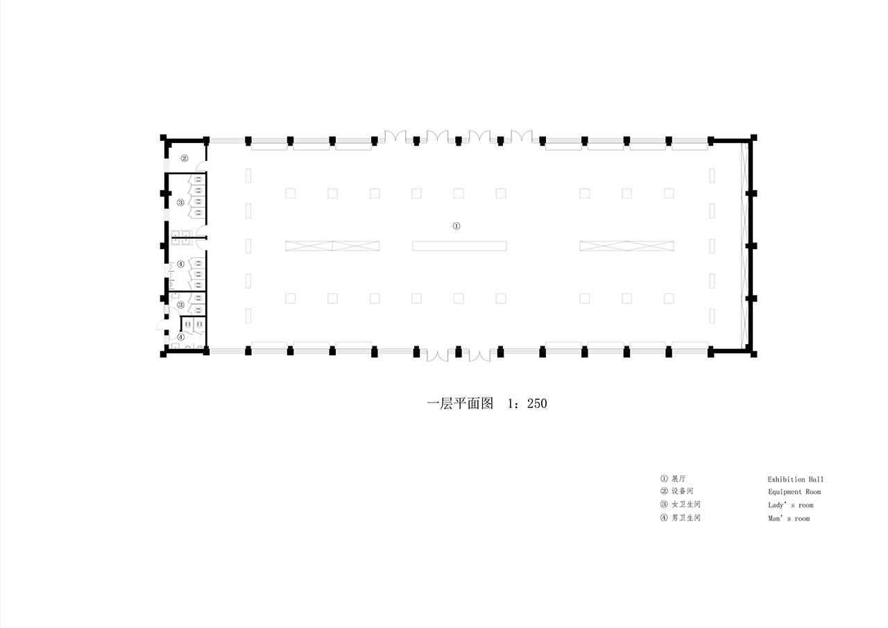 采用“修旧如旧”手法,对坍塌屋顶进行木结构加固修复,破损墙体按原有工艺补砌,恢复建筑灰墙斜屋顶的历史风貌。内部空间通过灵活布局适应动态换展需求,形成通用大空间原型。