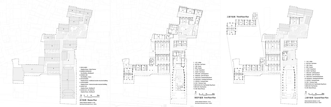 场地中的两处新建建筑保留了原有的第五立面样式,功能分别是餐厅包厢、客房和汤屋。