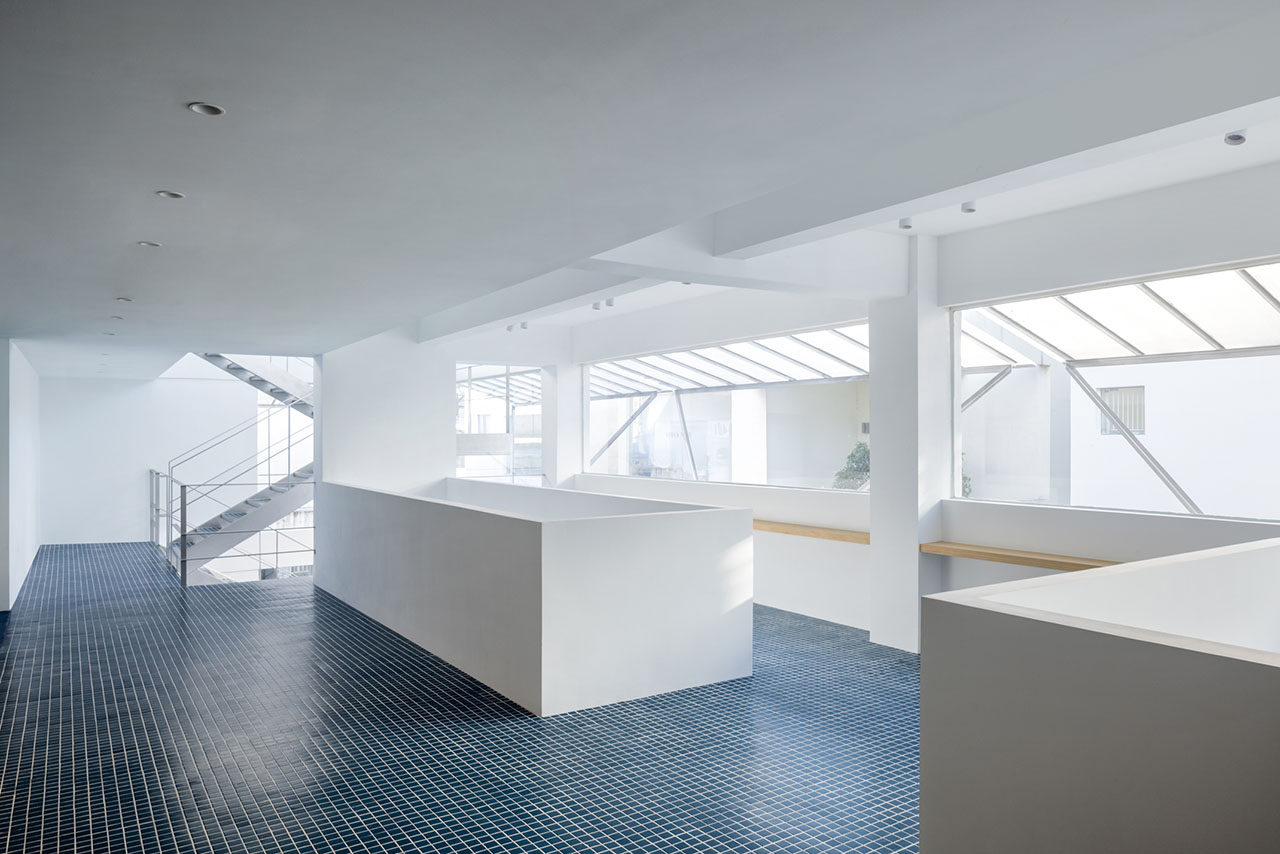 由功能机制出发,引导出水平与垂直两条设计轴线,通过界面的退让,最终形成一个八小时机制的日常办公场所。