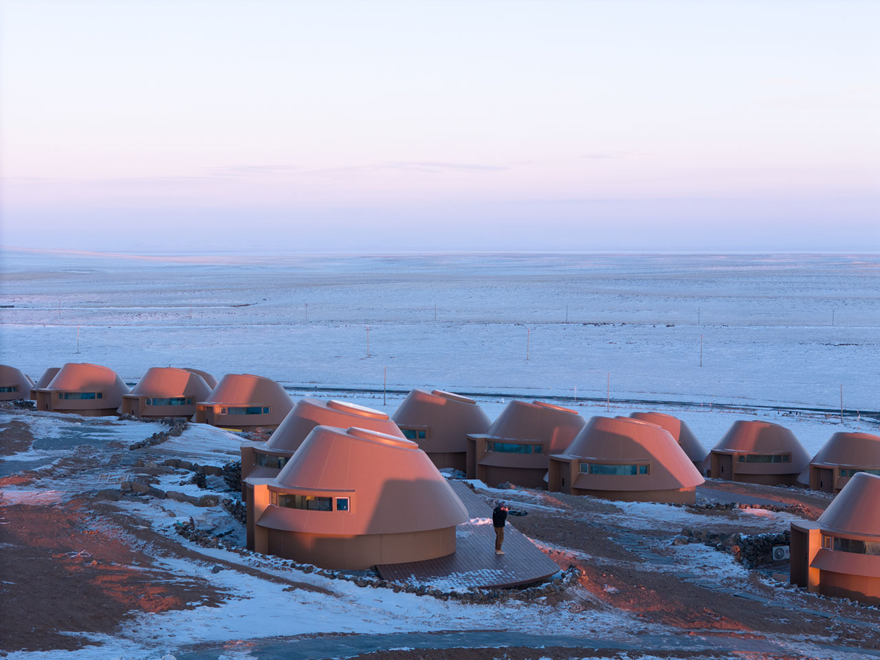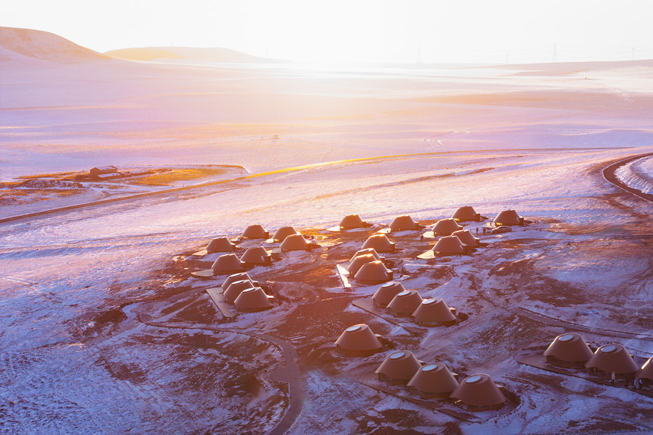 PLAT ASIA设计的火山里·到达者酒店和火山里游客中心于2025年冬落成,项目位于锡林浩特白银库伦草原火山旅游度假区。火山里·到达者酒店以单体群落的形式散落在这座喷发于第四纪的火山锥南坡上,面向东南的草原、湖泊和沙地景观。