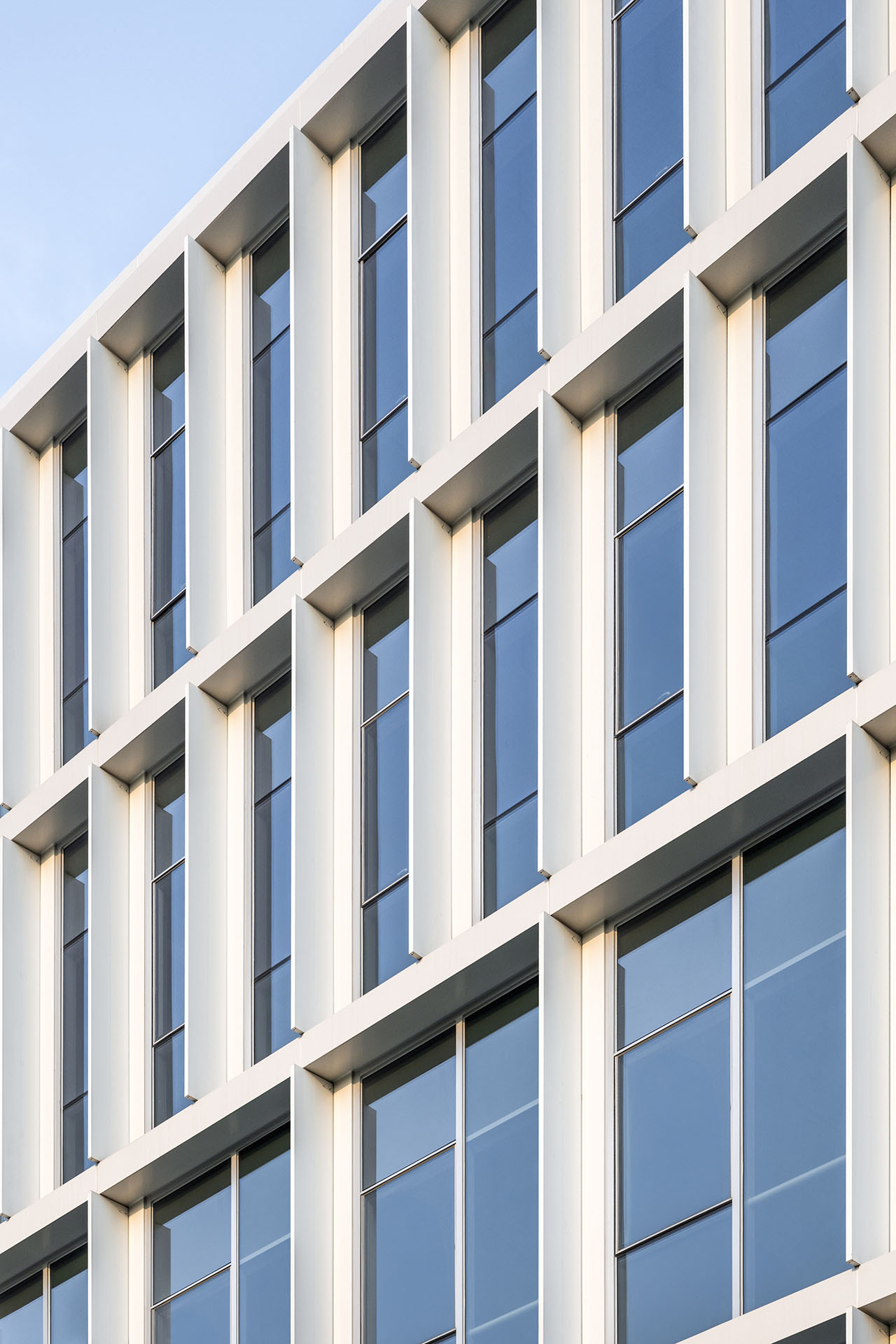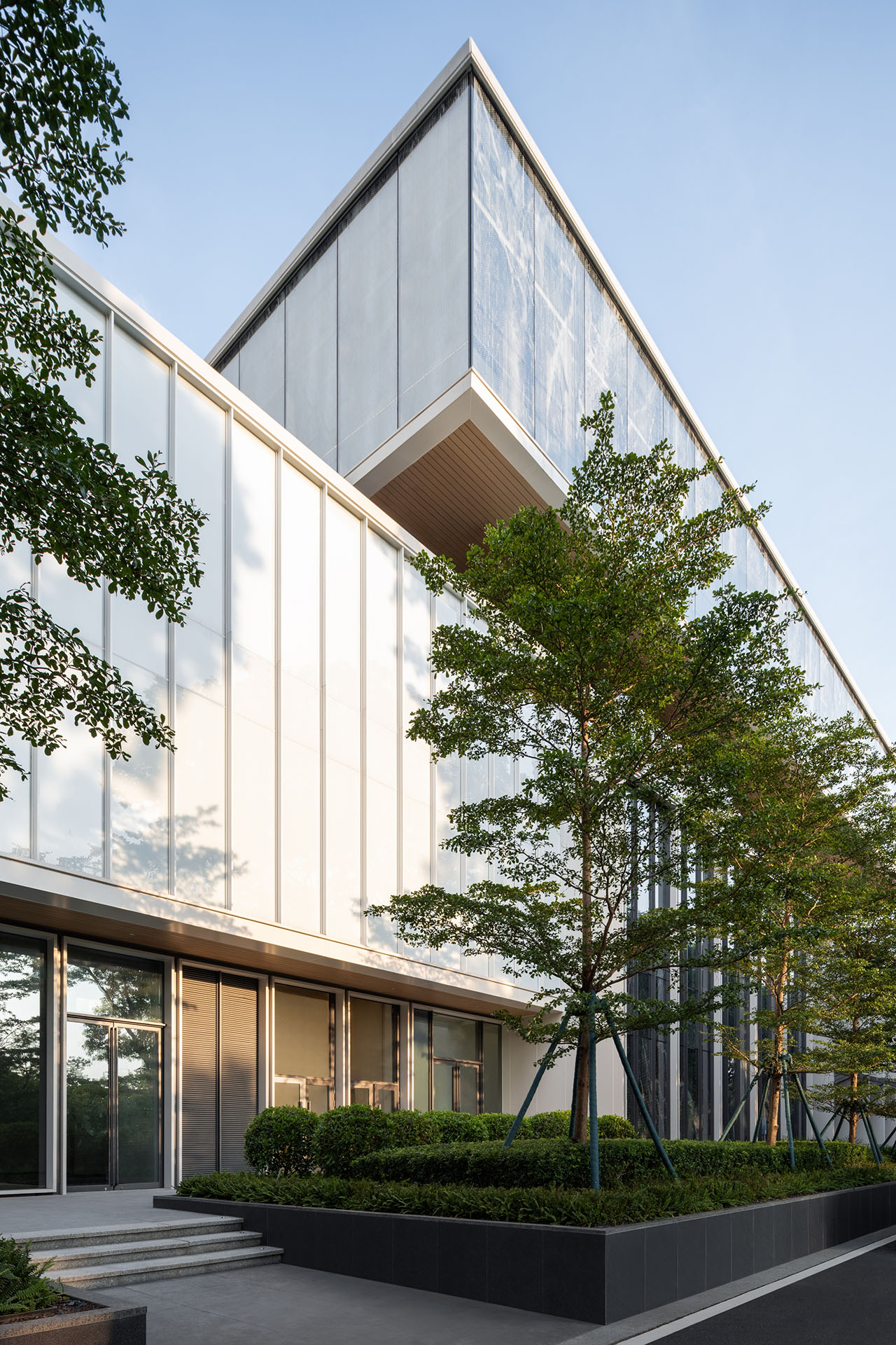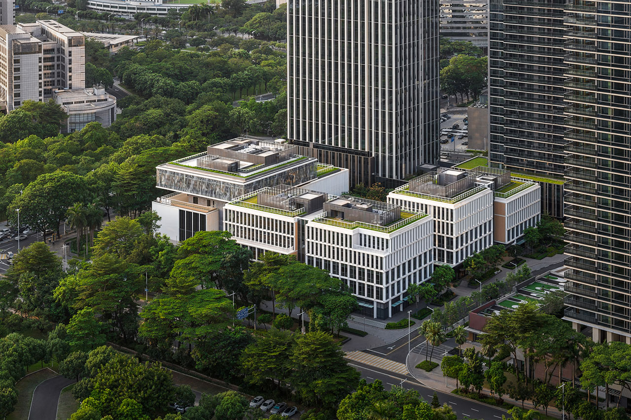 整体建筑有大量自然光通过竖向天井与透明的流线空间深入室内,营造出明亮、健康、宜人的工作环境。白色铝制立面与细长竖向遮阳肋片共同过滤阳光,确保用户在亚热带气候下使用的舒适性。这些建筑共同展示了深思熟虑的建筑设计如何在回应业主诉求的同时,创造出灵活、高效、以人为本的新一代办公场所。