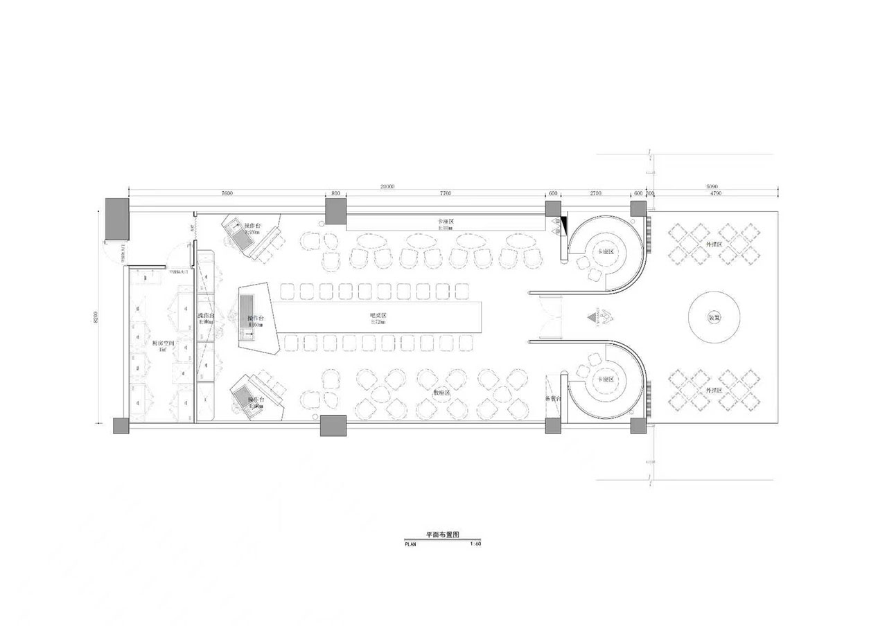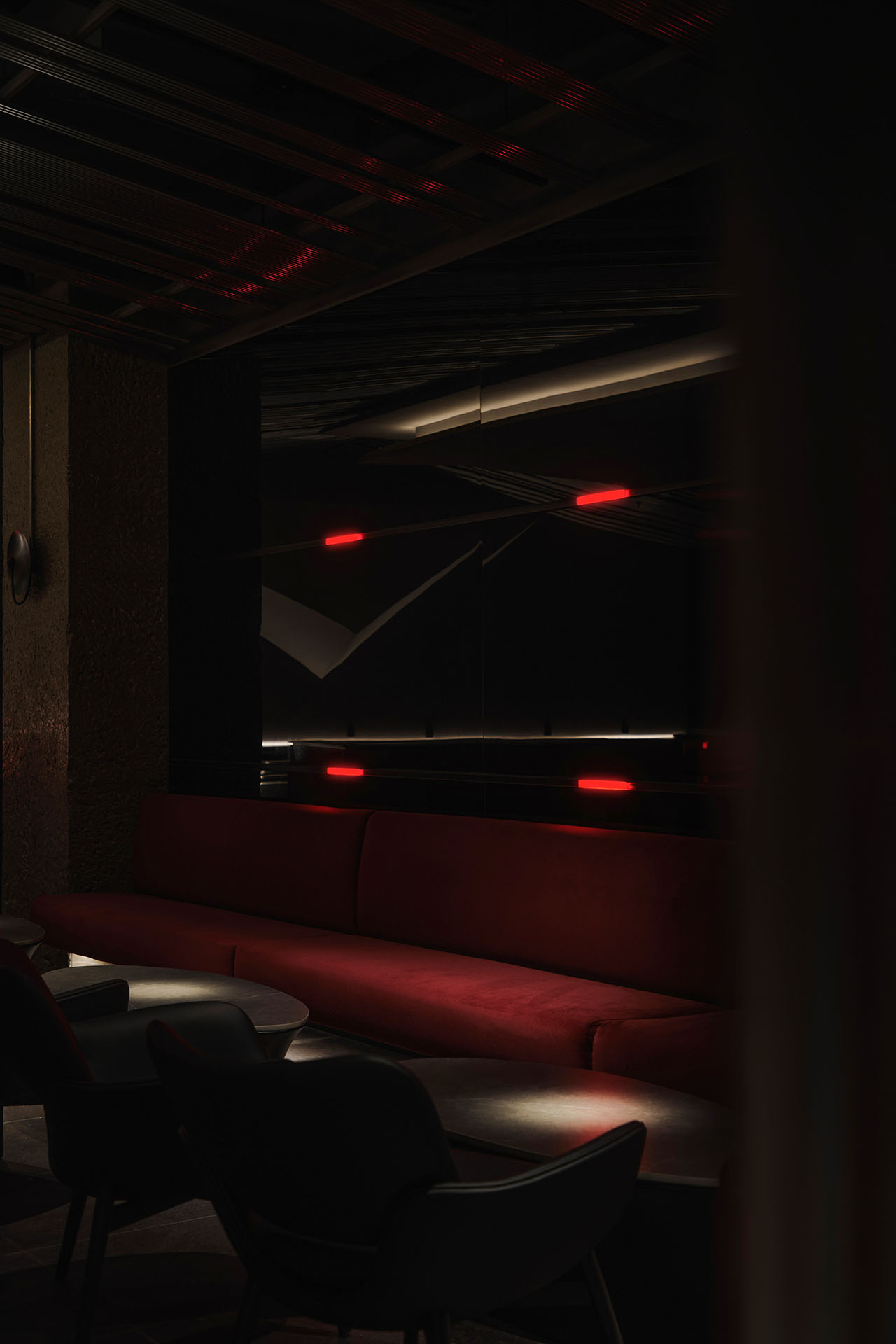 中部、左侧与右侧的三个吧台各自作为独立的服务节点,调酒师可同时服务不同客群。能量节点般的布局,让夜晚的社交在此流动与交汇。