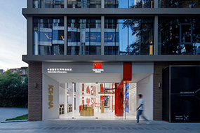在天目里坚硬外壳包裹下的园区中心,独立存在的玻璃房子中生长着一股穿透的自然生命力。于此,我们为 RUOHAN 打造了