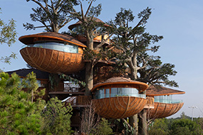 规划结合基地周边景观自然条件,设计着眼于特色汤山温泉和江南山水,从人的“体验”出发,从自然(温泉)、功能(度假)、主题(康养)三方面出发,营造整体氛围与空间形态。同时,通过对基地现状景观视线的分析,将各个主题功能及配套设施按对景观的需求性出发,逐级布置,形成错落有致的建筑界面,使更多的建筑达到良好的观山视觉感受,在充分利用山景的同时,留出中心大尺度的公共空间,作为活动场所。