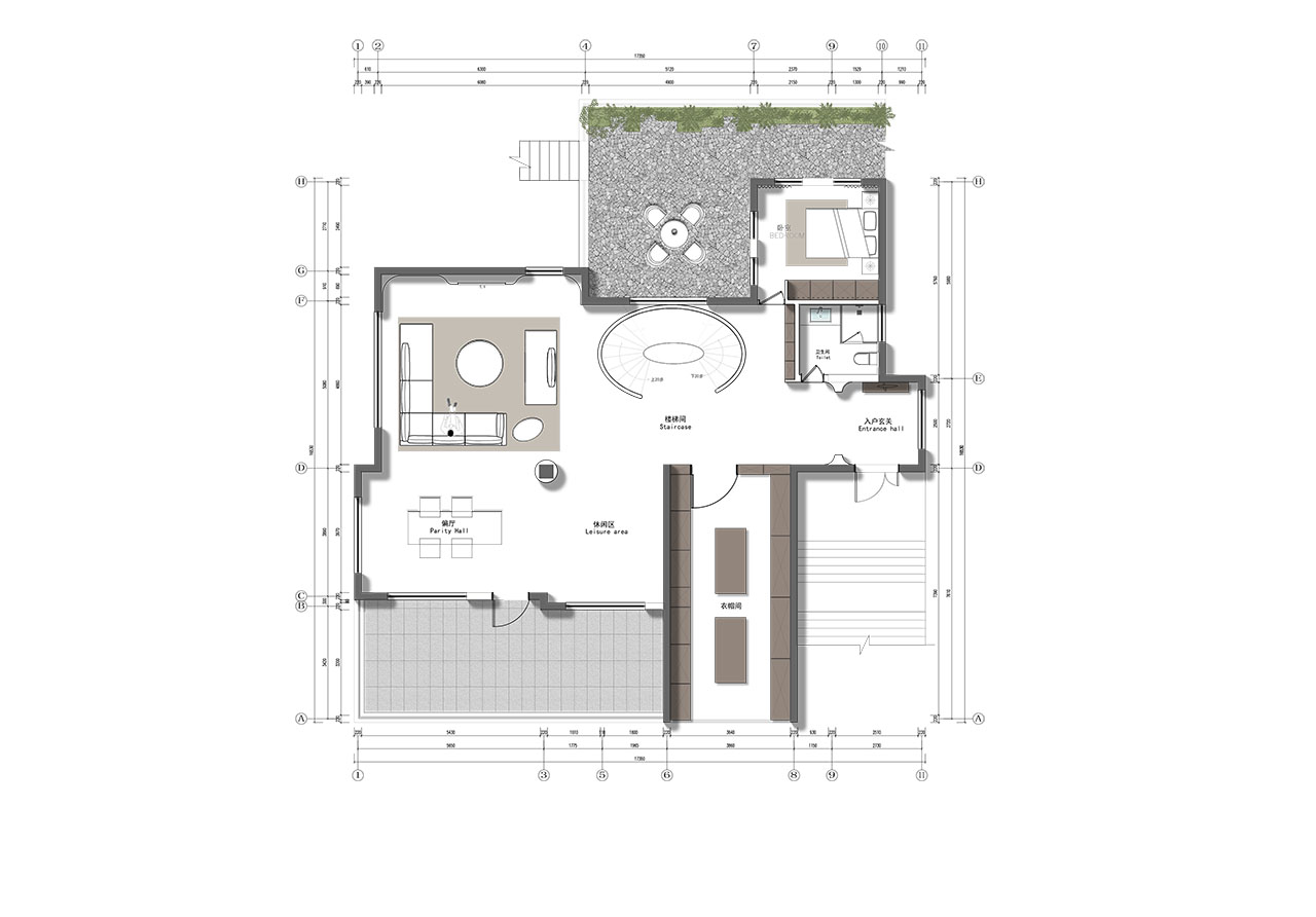 以圆润曲线柔化建筑结构的硬朗感,同时通过顶面分区自然划分出功能边界。既保持了空间的通透流动,又通过设计语言赋予每个区域专属的领域感。