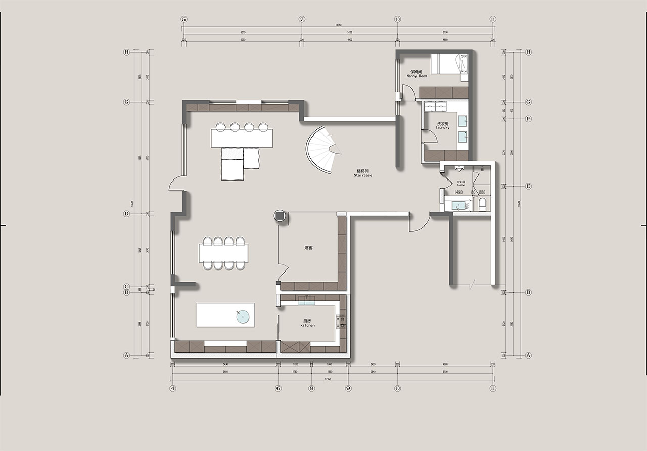 弧形墙从建筑结构层面消解生硬边界,打破直线惯性,让空间流动如诗;圆形舷窗以建筑 “画框” 思维框定景观,将室外景致转化为室内艺术装置。我们以曲线重构硬装秩序,让每一处结构设计都成为生活与艺术的连接点。