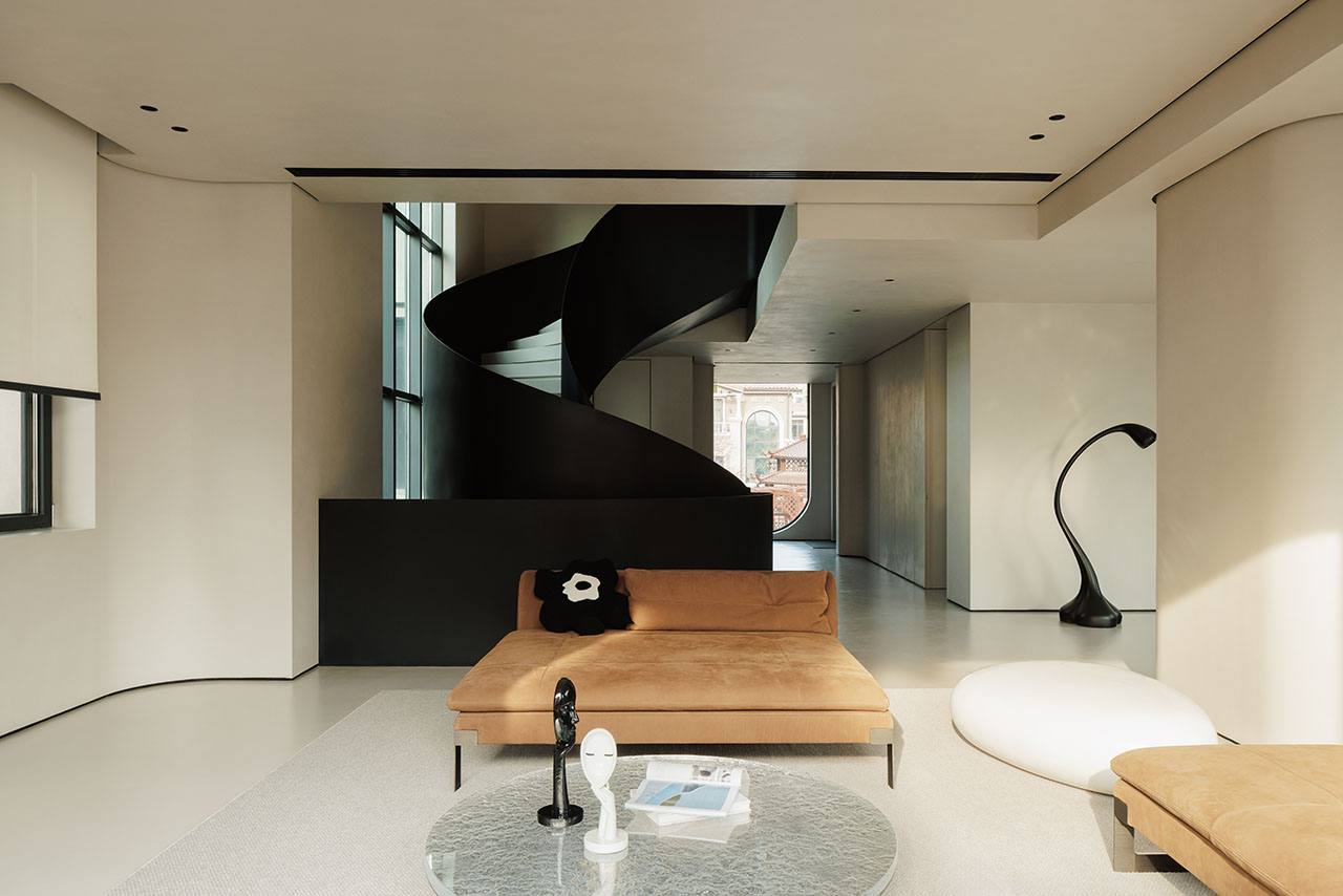 螺旋楼梯不再是单纯的交通构件,而是成为 “生活的艺术装置”;通过结构的诗意、材质的碰撞与光影的交响,让居住空间成为可沉浸式体验的建筑艺术容器。