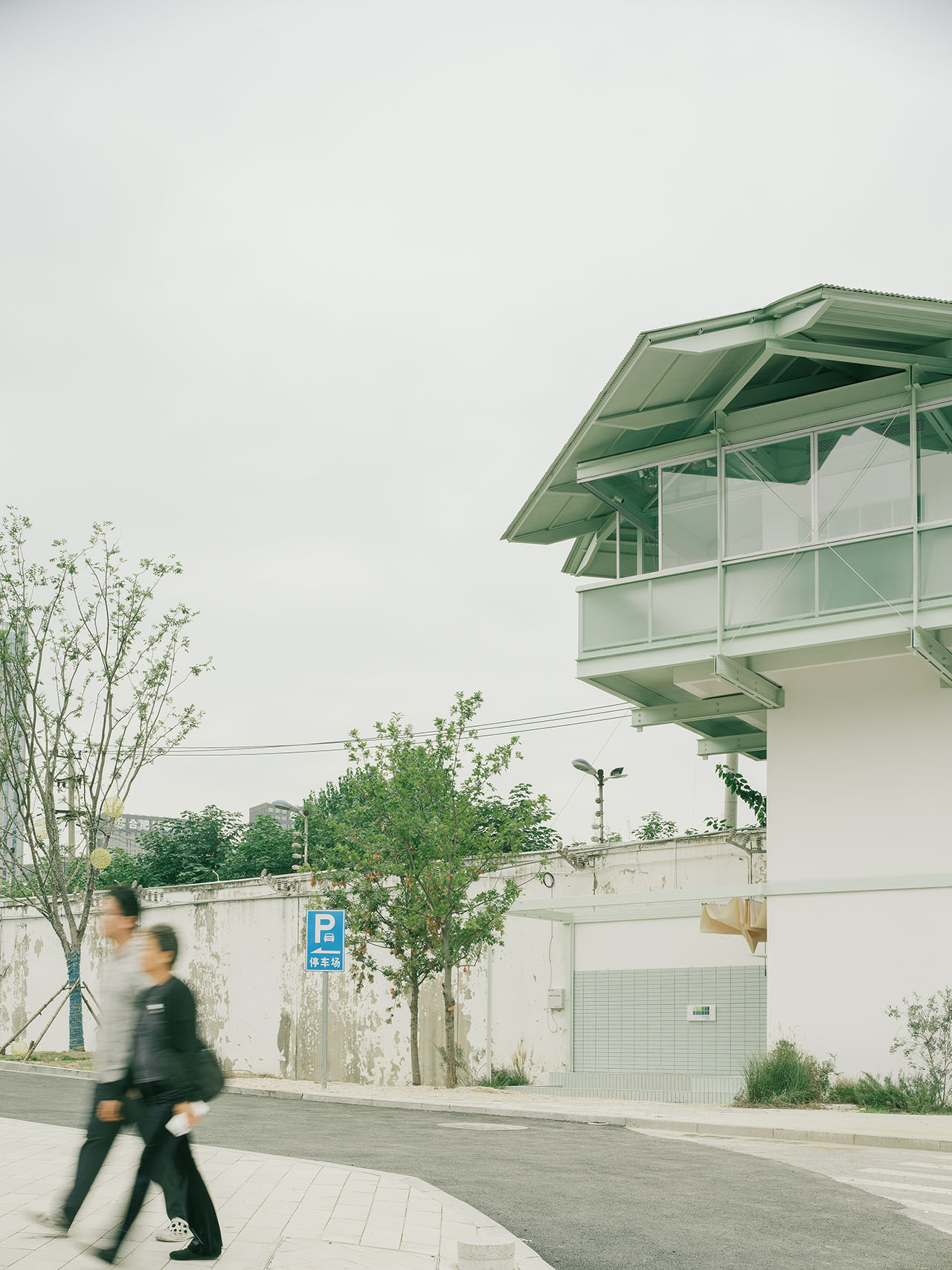项目在合柴1972创意园区。园区前身是安徽省合肥监狱,重新改造后如已成为了当地热门的文创园区。第一次来看场地时是陪同甲方看另外一个餐厅项目。现场无意瞥间路边的一栋废弃建筑,便好奇问了物业该建筑的状况和用途,得知是原监狱的看守塔,由于各种原因没有与园区一起改造荒废在了一边。随即便询问是否可以改造成为园区及附近居民服务的一家24h小书店。项目就这样启动了。