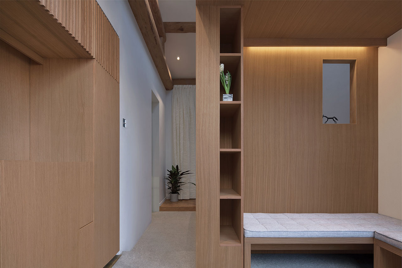 原有建筑的旧的窗框我们予以保留,在不同的房间中重新组织利用,处处可见这座院落旧时的生活气息。