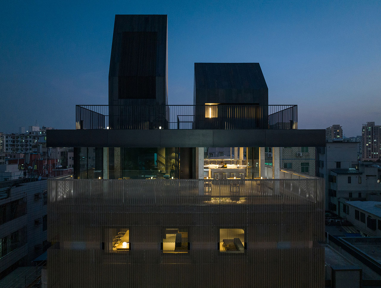 如恩在顶层设计中采用了平屋顶的形式,并加盖了金属结构。对于空间局促的城中村而言,这一向上伸展的空间,将当地巷道生活的画幅延伸至屋顶,为公共空间带来了新的诠释。