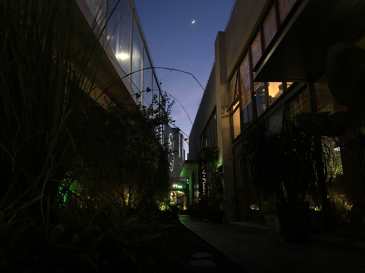 町步,鹅卵石,修竹,并搭配旅人蕉、香茅、芦苇、吊兰,蕨类植物等,营造出半环形的地面园林。人虽在二楼,也有很强的接地感。