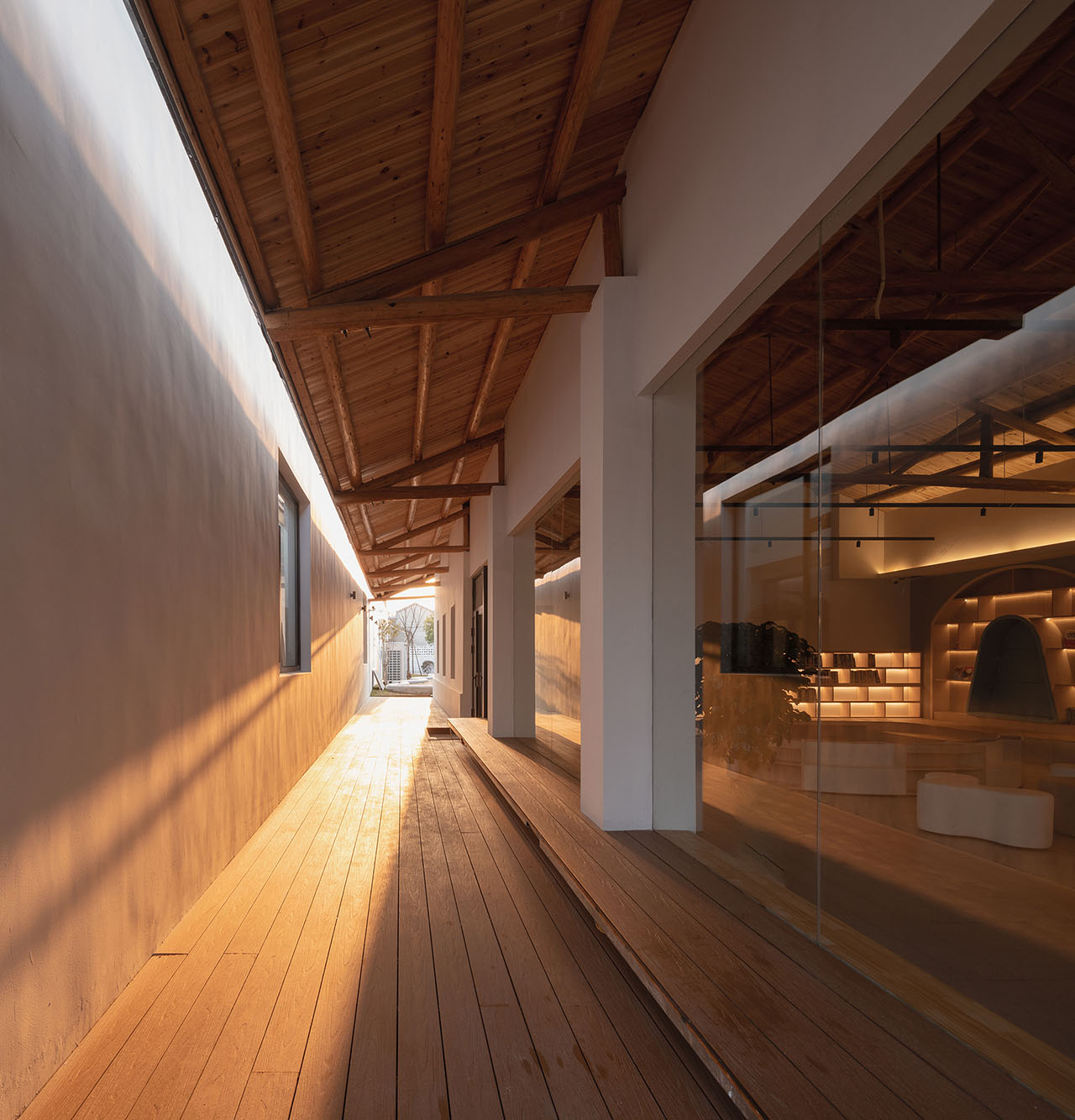 项目定位为服务于村民的公共空间,业主及运营方希望空间中可以融合产业、文化及人本关怀三大主题来展开。原本场地亦呈围合状,中间有较大内庭院。建筑师根据场地实际情况,采用建筑改造加原址局部新建叠加的形式,将建筑体块重新进行功能分配与组合。