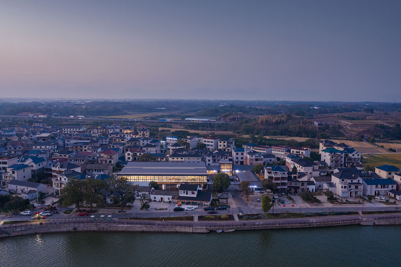 项目位于衢州市龙游县小南海镇团石村,北侧为G60沪昆高速,西虎线穿境而过,南临衢江。场地隔路即为衢江水域,拥有宽阔的江景视野。前身为小学旧址,现为一企业厂房,建筑质量与结构都不太理想。周边均为滨水而居的村民住宅,前方留存历史建筑马氏节孝坊为清乾隆五十五年(1790)修建。