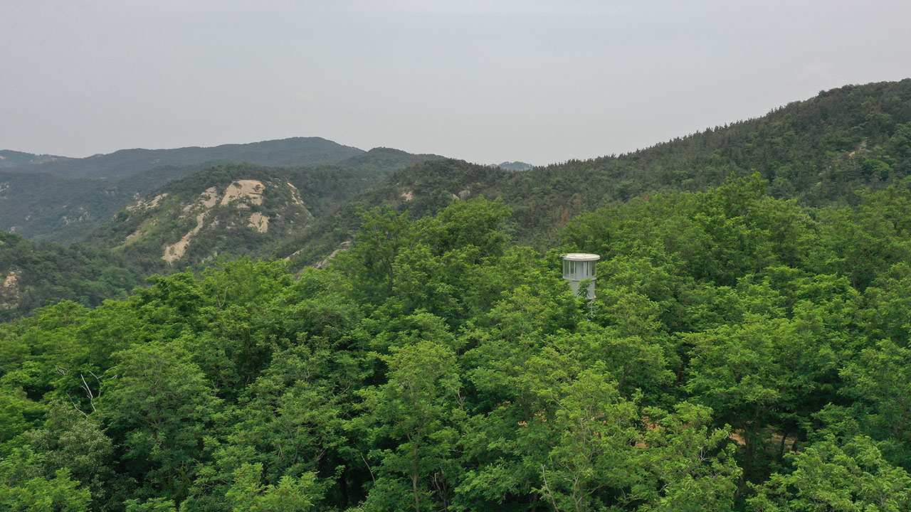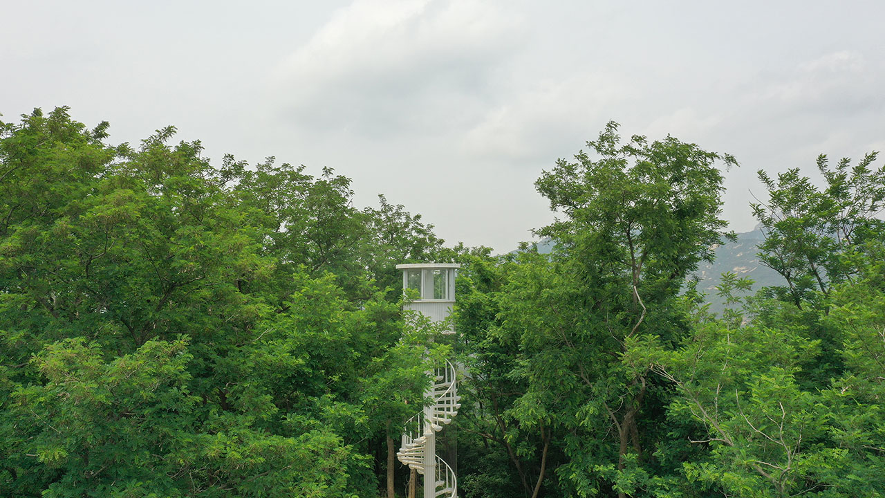 欧节沟位于昆嵛山林场二分场内,山上鲜有较低矮的赤松林和裸露的大岩床,大部分植被为高大的刺槐林,浓密的枝叶完全遮挡了人的视野。为了让护林员能快速到达8米以上越过树梢的高度,这里需要一座高挑瘦长的瞭望塔。