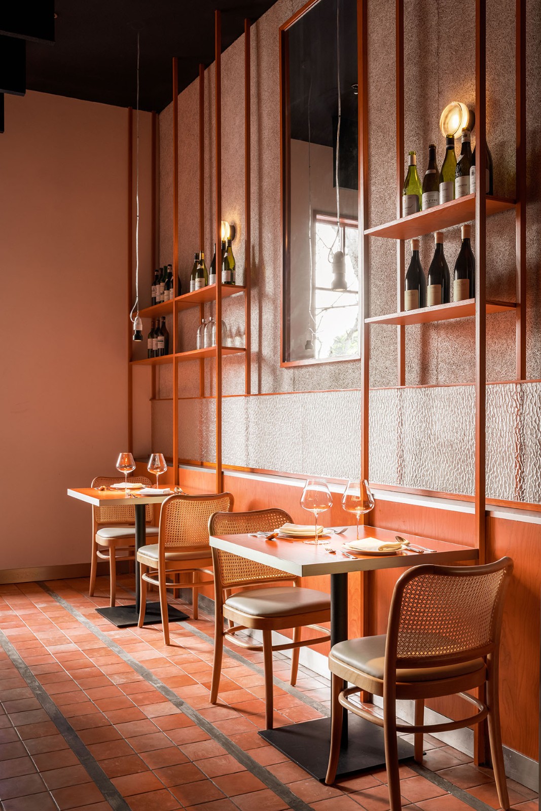 Nuits是一家具有“Bistronomic小酒馆”氛围的法式餐厅。设计背后的精神是营造一种休闲而别致的氛围。餐厅分为两层,一楼设有酒吧和一些高座位,更加轻松活泼,二楼设有酒窖和餐厅,更温馨。风格延续了法国小酒馆的元素,地板上的石头,大镜子,白色瓷砖,大理石桌子,藤椅,灯光整体融合了现代线条和七十年代的风格。将传统与现代相结合以配合厨师的美食非常重要。创新,但基于传统的法国食谱。我们还想表达一个休闲的地方,每个人都可以感受到有适合自己的窖藏葡萄酒选择,从节日葡萄酒到“grand cru”。Nuits 是一家别致的小酒馆,酒吧和酒窖,是感受法式体验的理想场所。