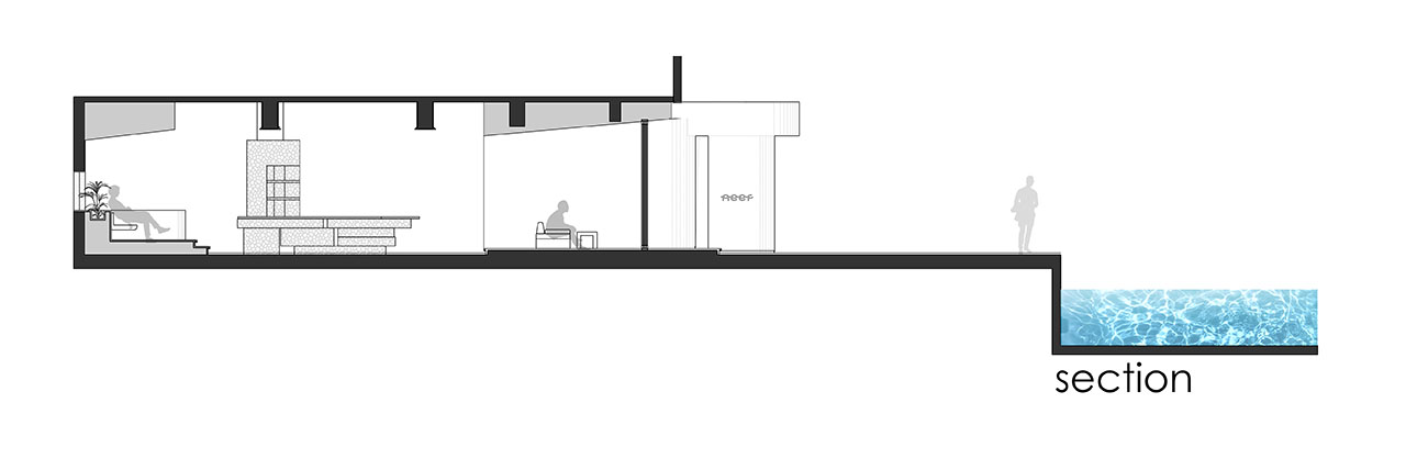 从与业主沟通之初,Reef旨在成为一个不受市场设计风格变化的易于维护的咖啡社交场所,为沿岸上漫步的行人以及专程前来的食客提供一个充满魅力的空间。建筑坐落在沿岸堤坝上,需要承受海边湿的侵袭和长时间日光照射覆盖